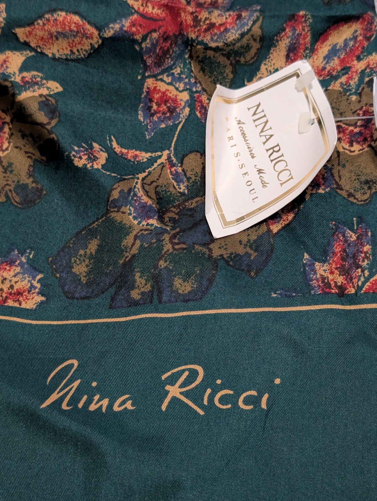 Vintage With Tags Nina Ricci Paris Floral Silk Scarf 57 x 11.5