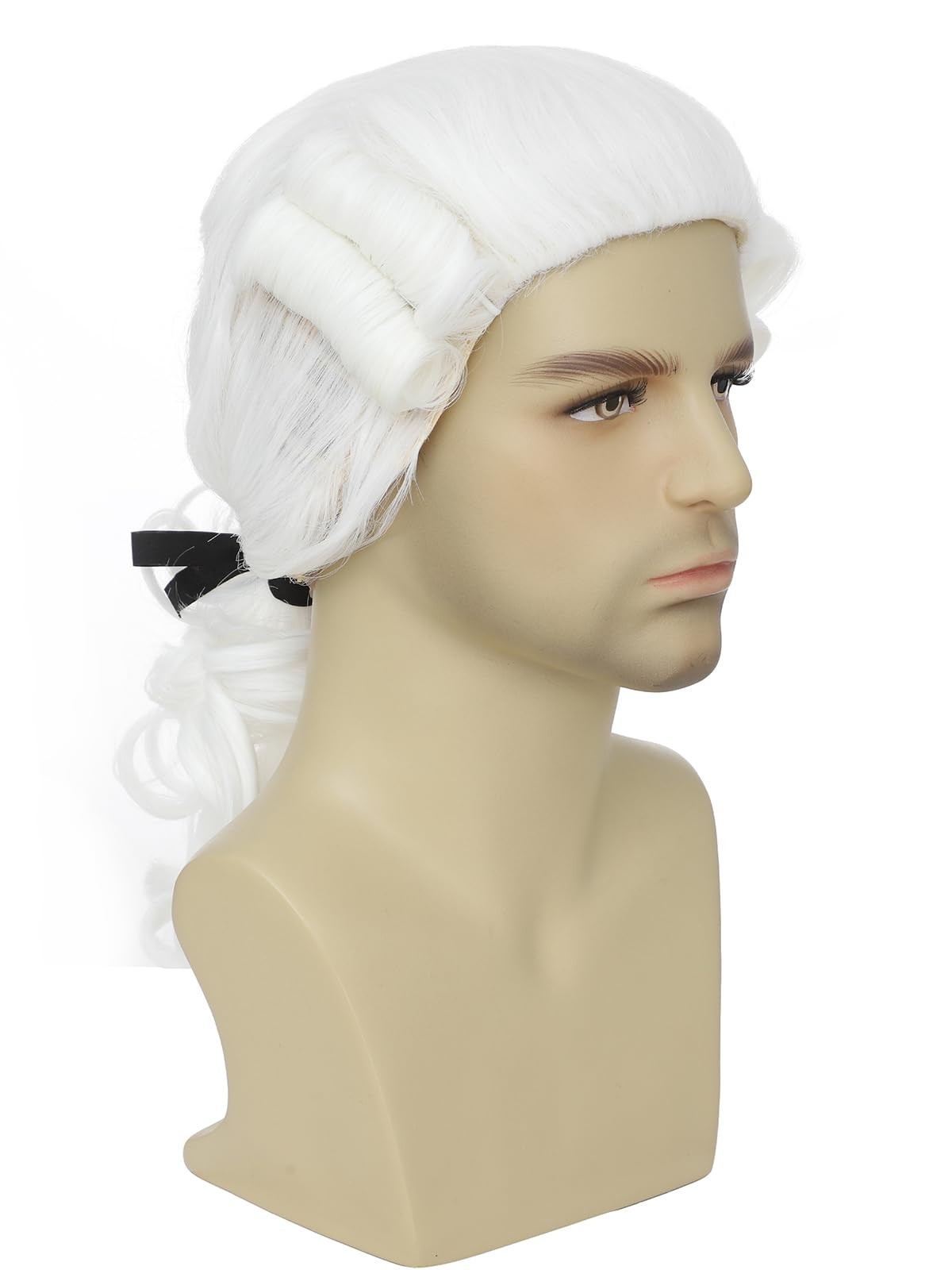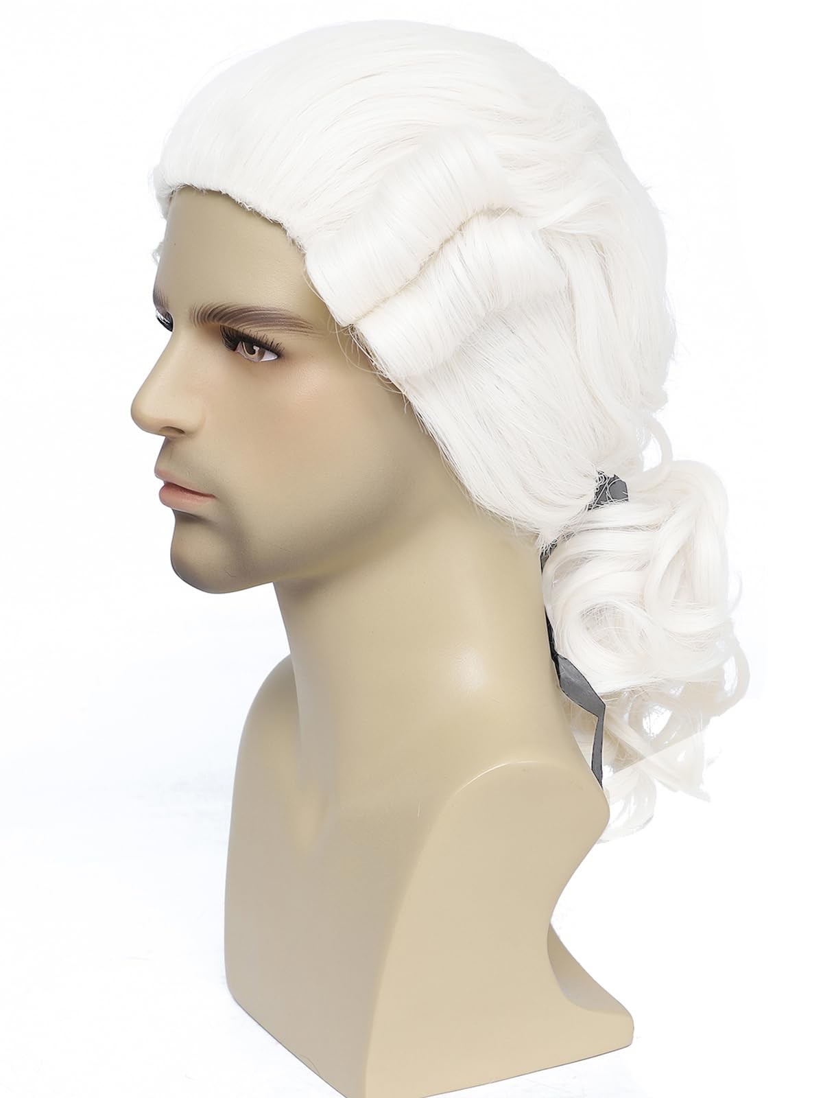Colonial Style White Wig for Men, Historical Costume Accessory, Wavy Ponytail...