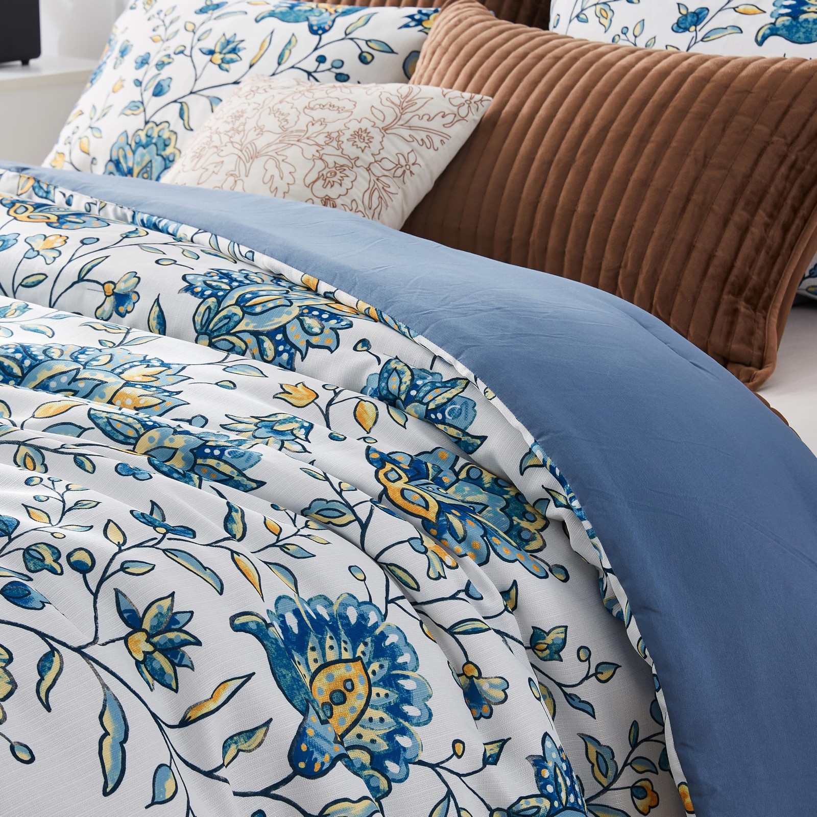 как выглядит Wonderful Blue Iris Floral Comforter Set Queen Size, Linen-Like Bedding Sets ... фото
