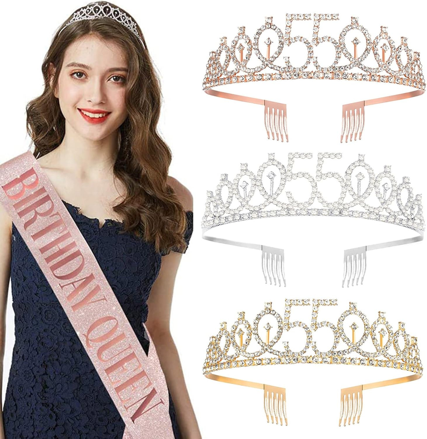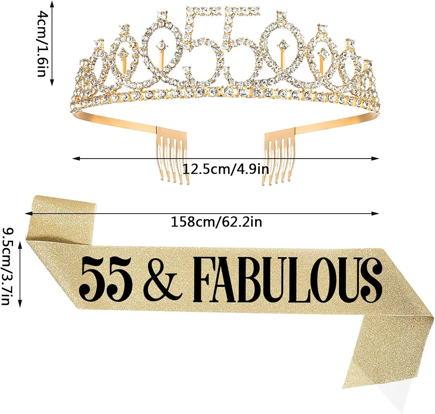 UVATAHONA 55Th Birthday Sash and Tiara for Women, 55 Fabulous Sash and Crown,