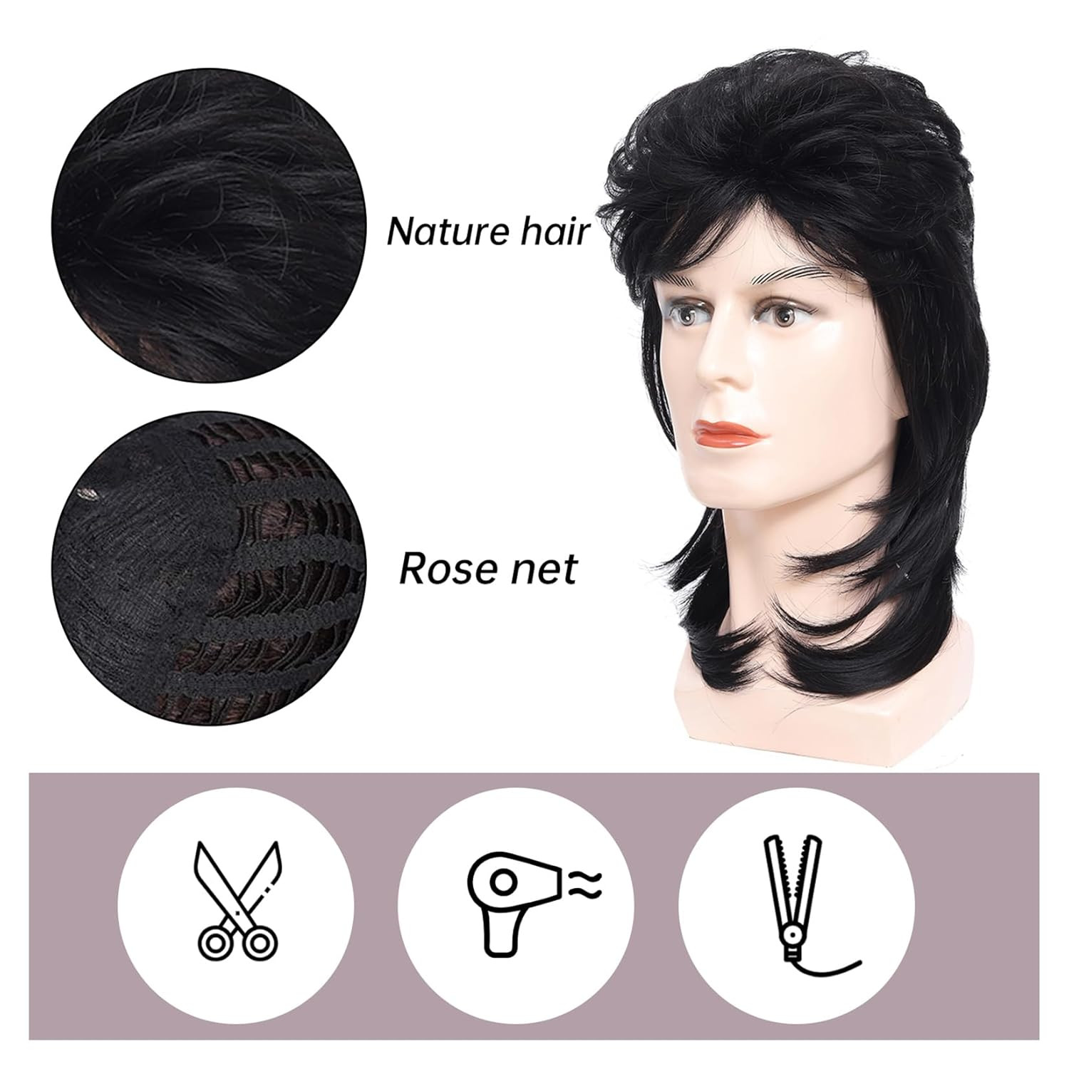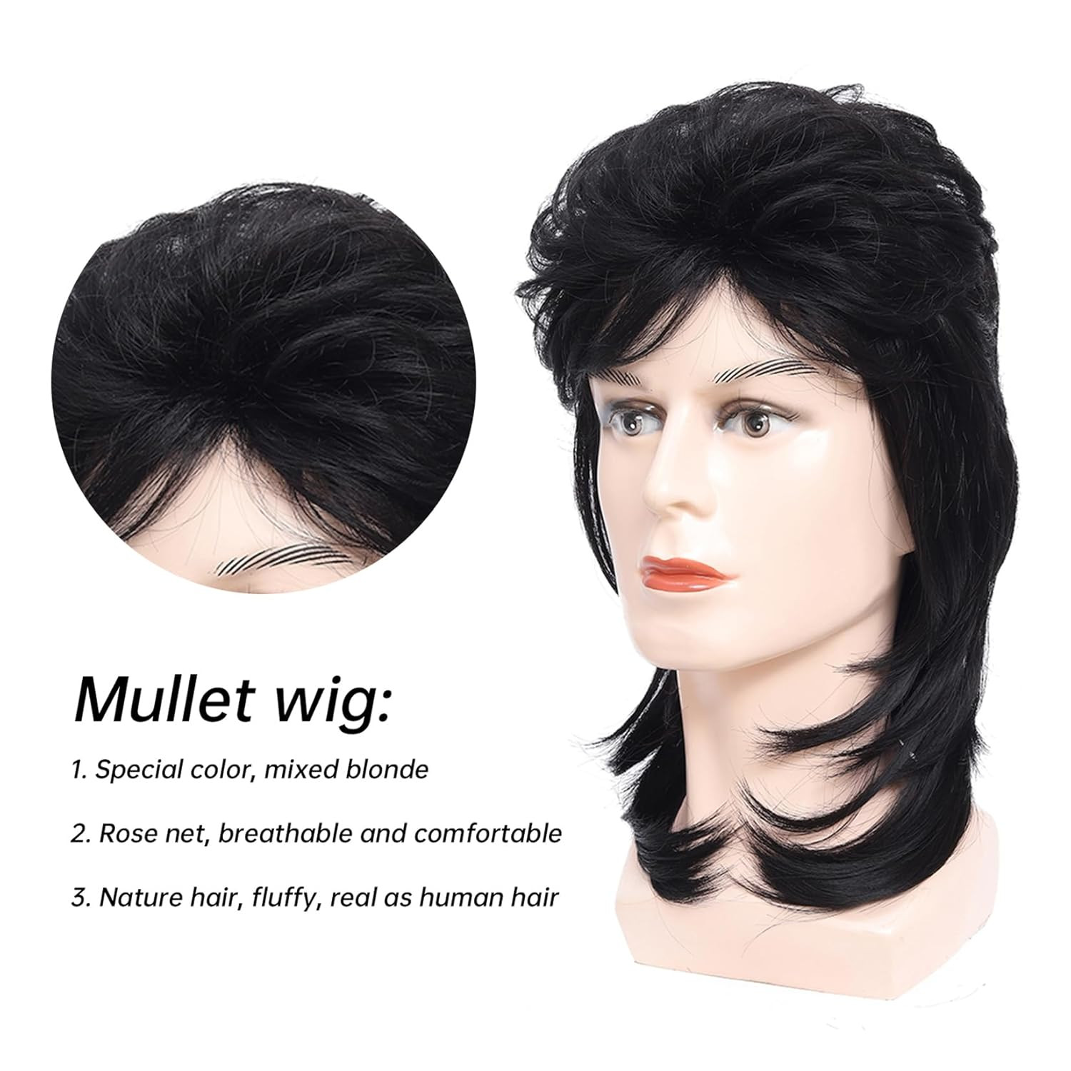 Mullet Wig for Men Joe Dirt Emo 80s 90s Costumes Fancy 4-Black