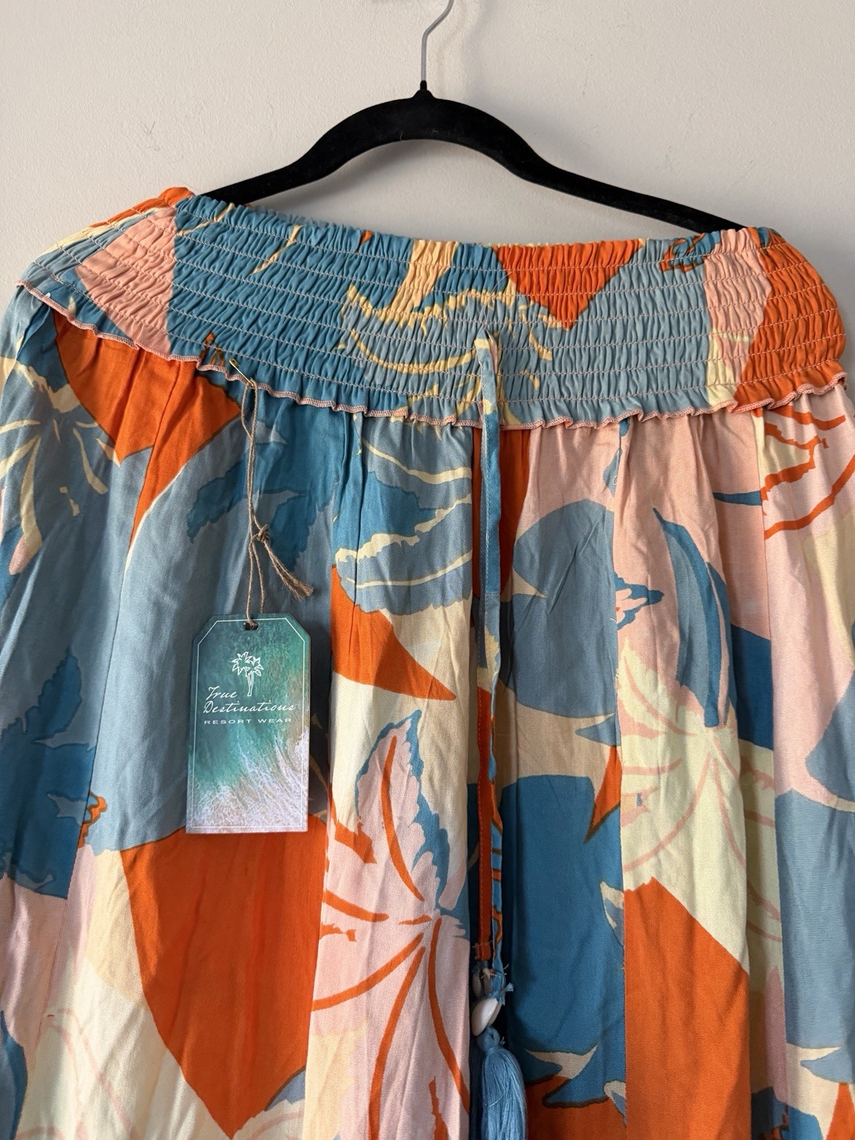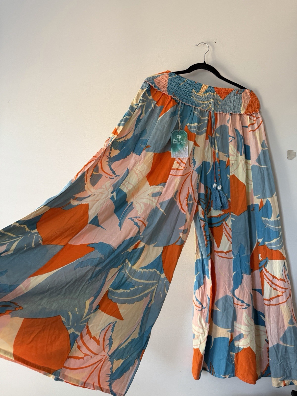 True Destinations Wide Leg Flare Pants Palazzo Size M Colorful Resort Wear Beach