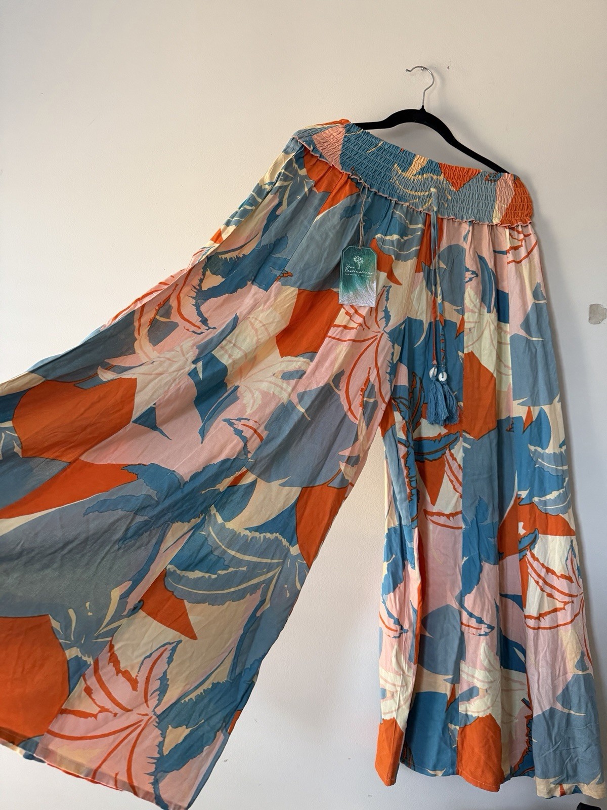 как выглядит True Destinations Wide Leg Flare Pants Palazzo Size M Colorful Resort Wear Beach фото