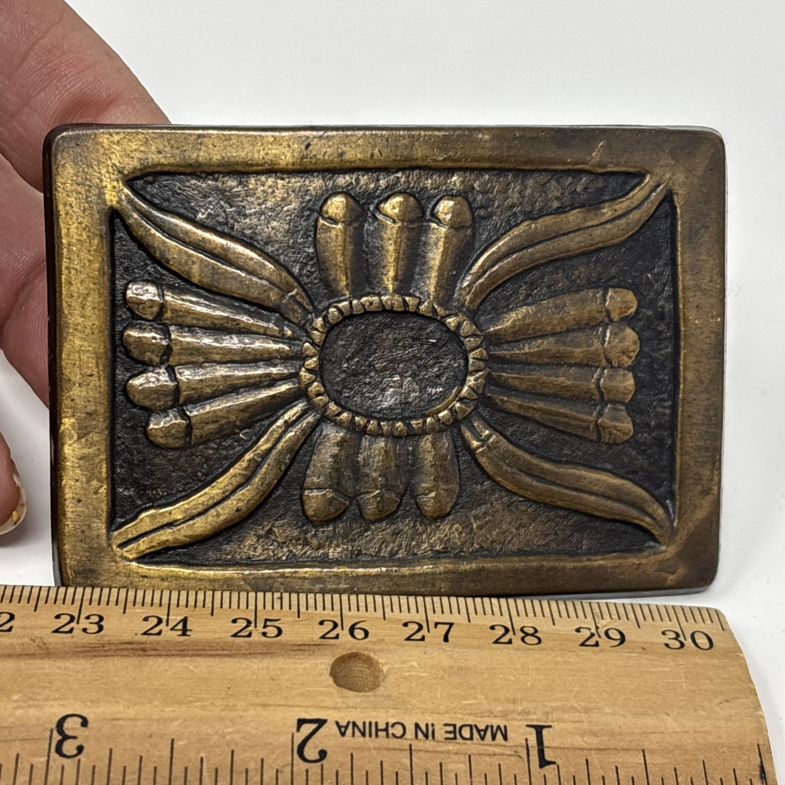 Native American Southwest Cast Brass Tone Faux Concho 1980s Vintage Belt Buckle