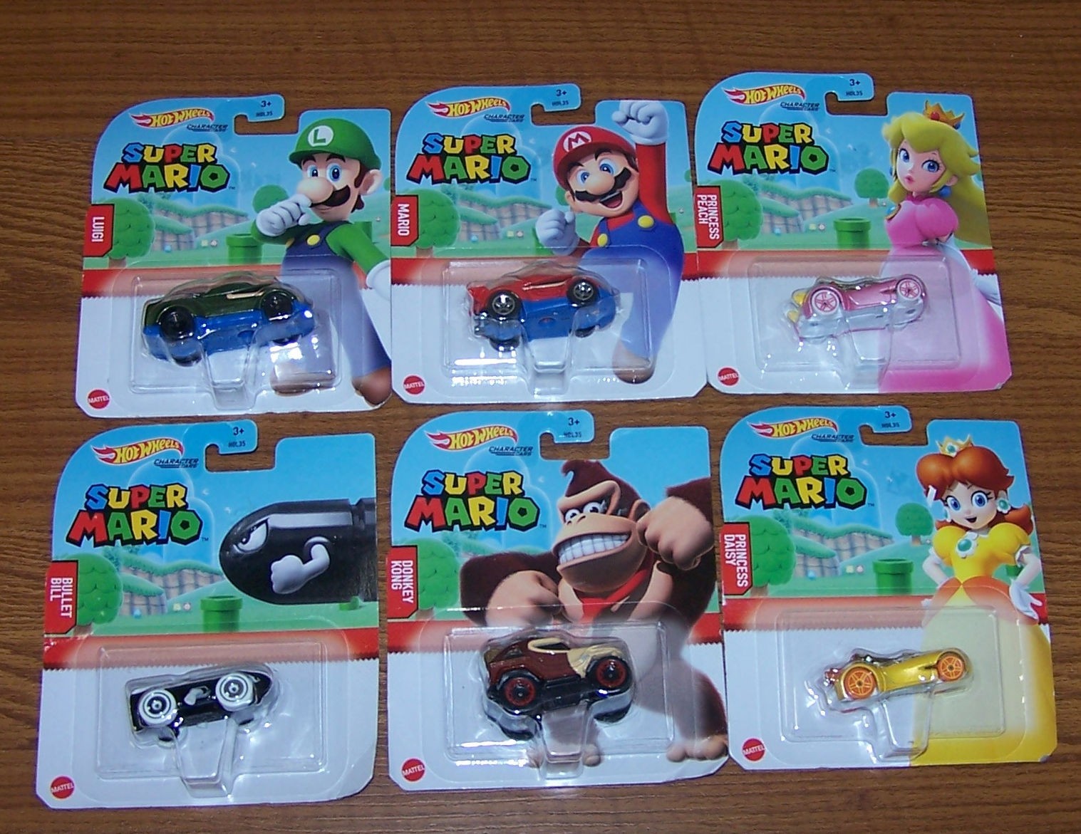 Hot Wheels Character Cars Super Mario Lot of 6 Luigi ,Peach, Donkey Kong, Daisy