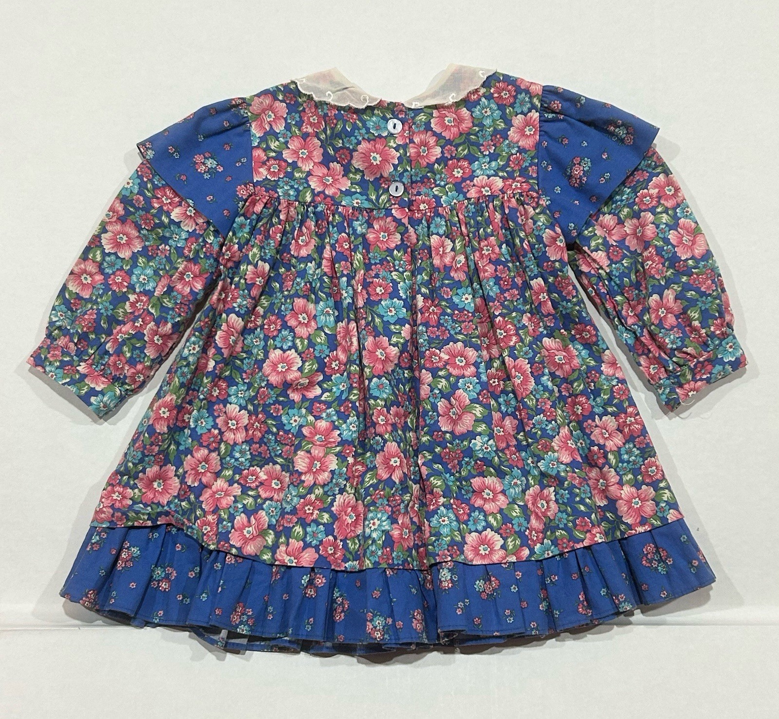 Vintage 90s Jo Lene Blue Floral Ruffle Dress Lace Collar Girls Size 2T Cottage