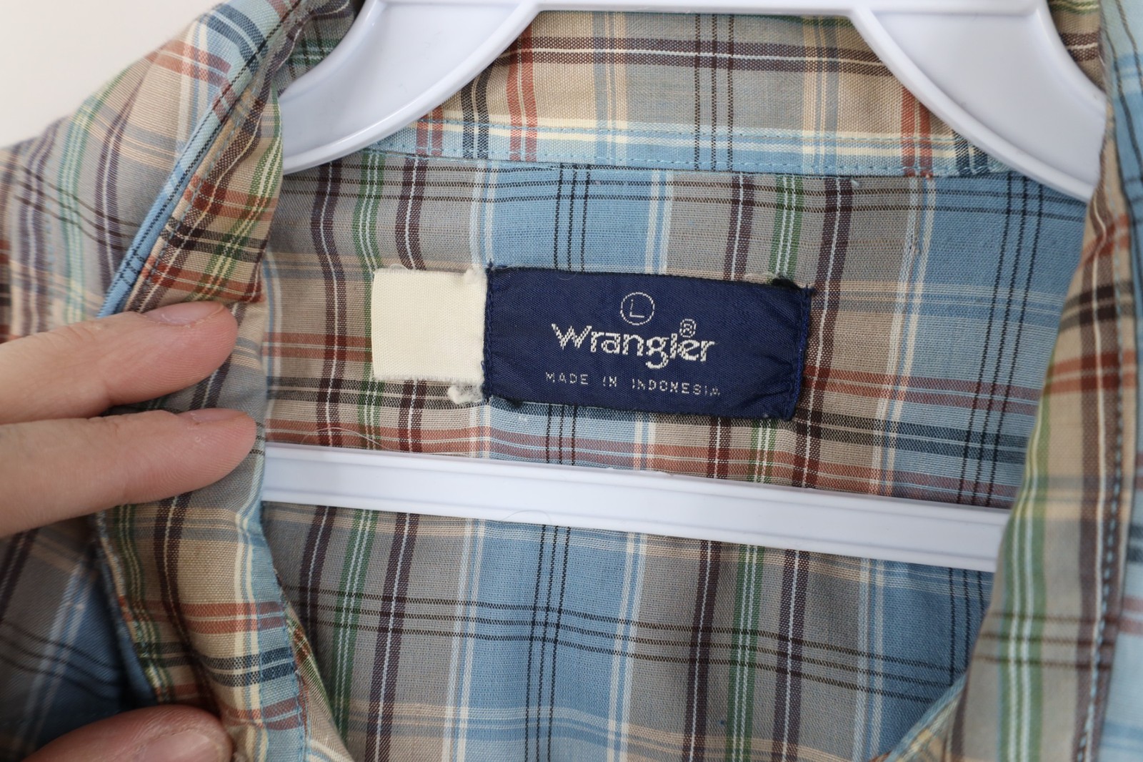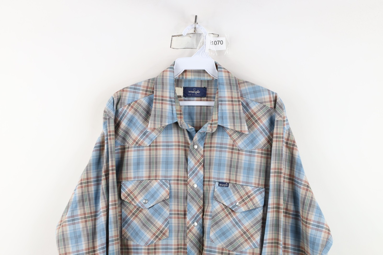 как выглядит Vtg 70s Wrangler Mens Large Faded Western Cowboy Snap Button Shirt Rainbow Plaid фото