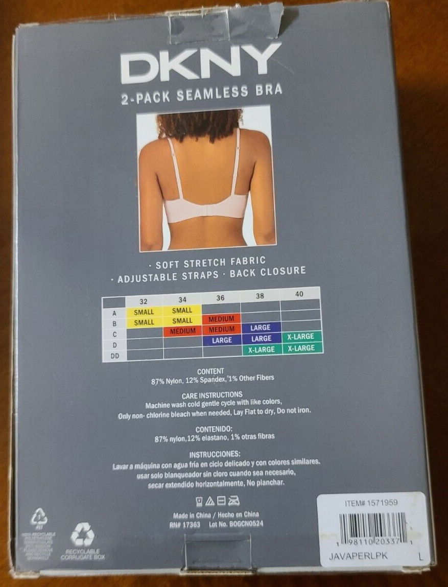 New DKNY Ladies' 2 Pack Seamless Adjustable Bra Brown Pink Size L
