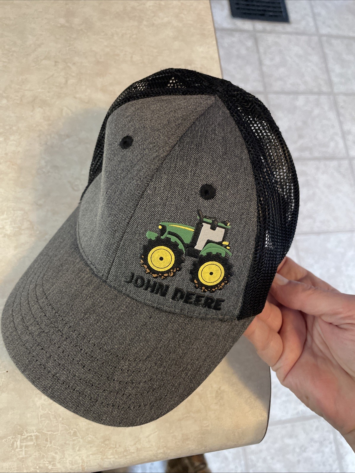 John Deere Toddler sized Trucker Snap Back Hat Grey with JD Tractor Logo