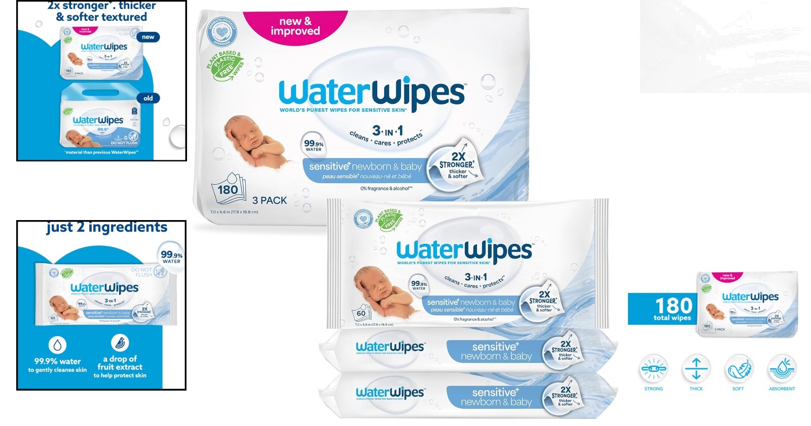 Sensitive Hypoallergenic Newborn Wipes, 3 Packs of 60 Thick Soft Wipes Each