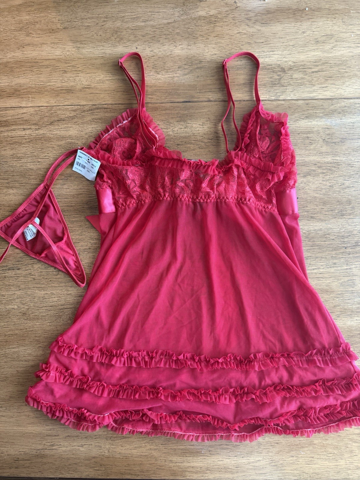 как выглядит NWT Red Frederick s of Hollywood Lingerie Set Babydoll chemise with G-string фото