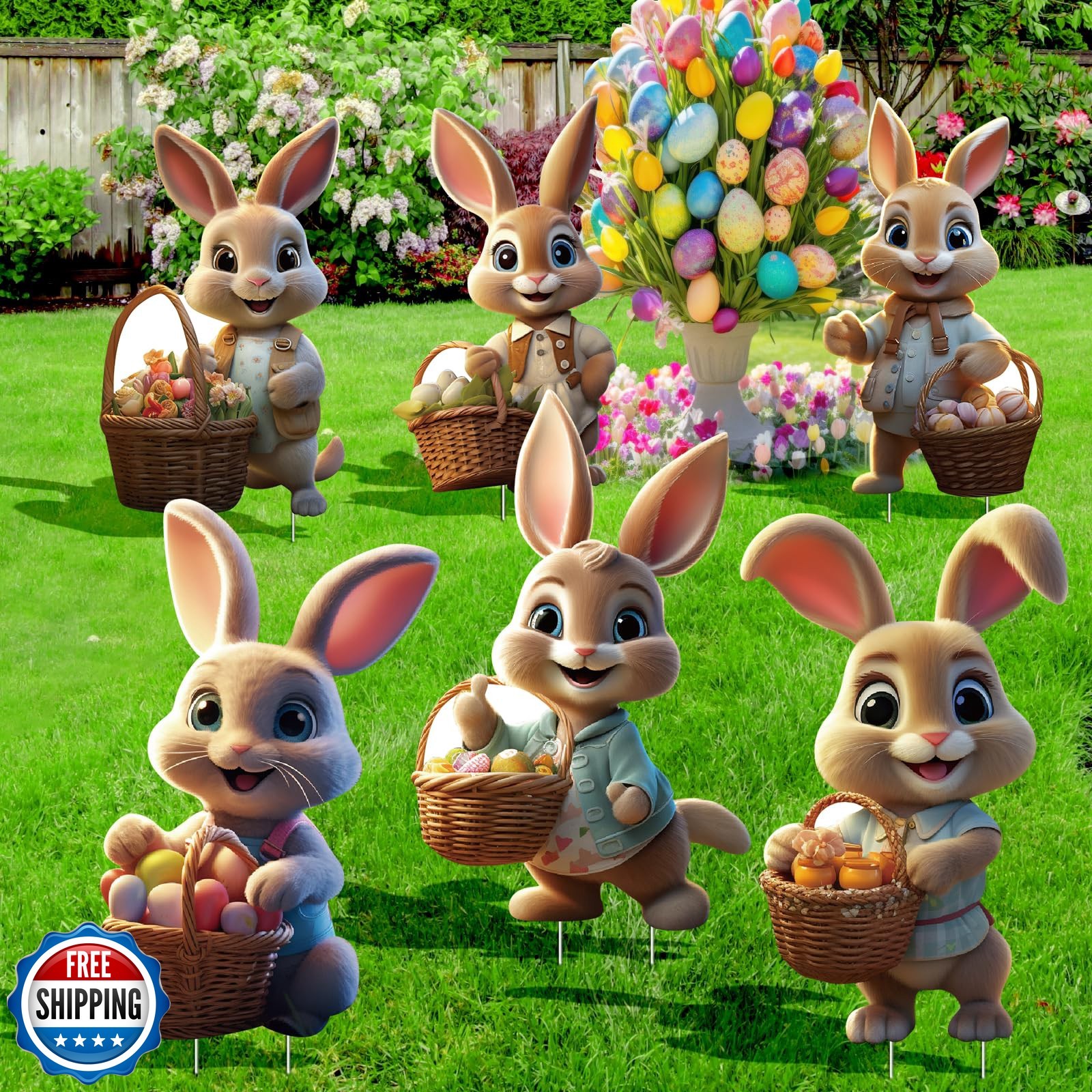 как выглядит 6 PCS Outdoor Easter Bunny Decorations - Bunny Yard Signs with Stakes - Water... фото