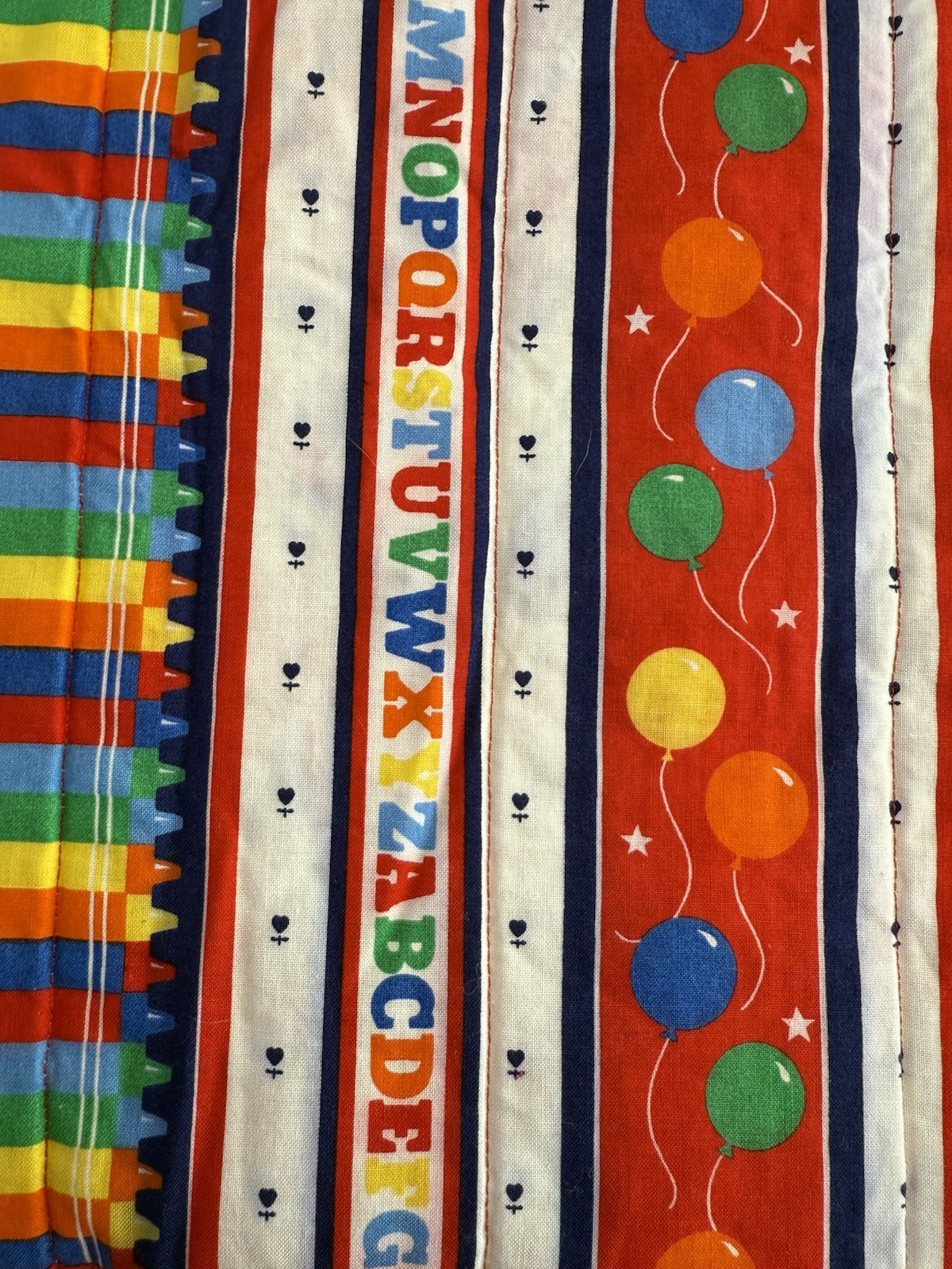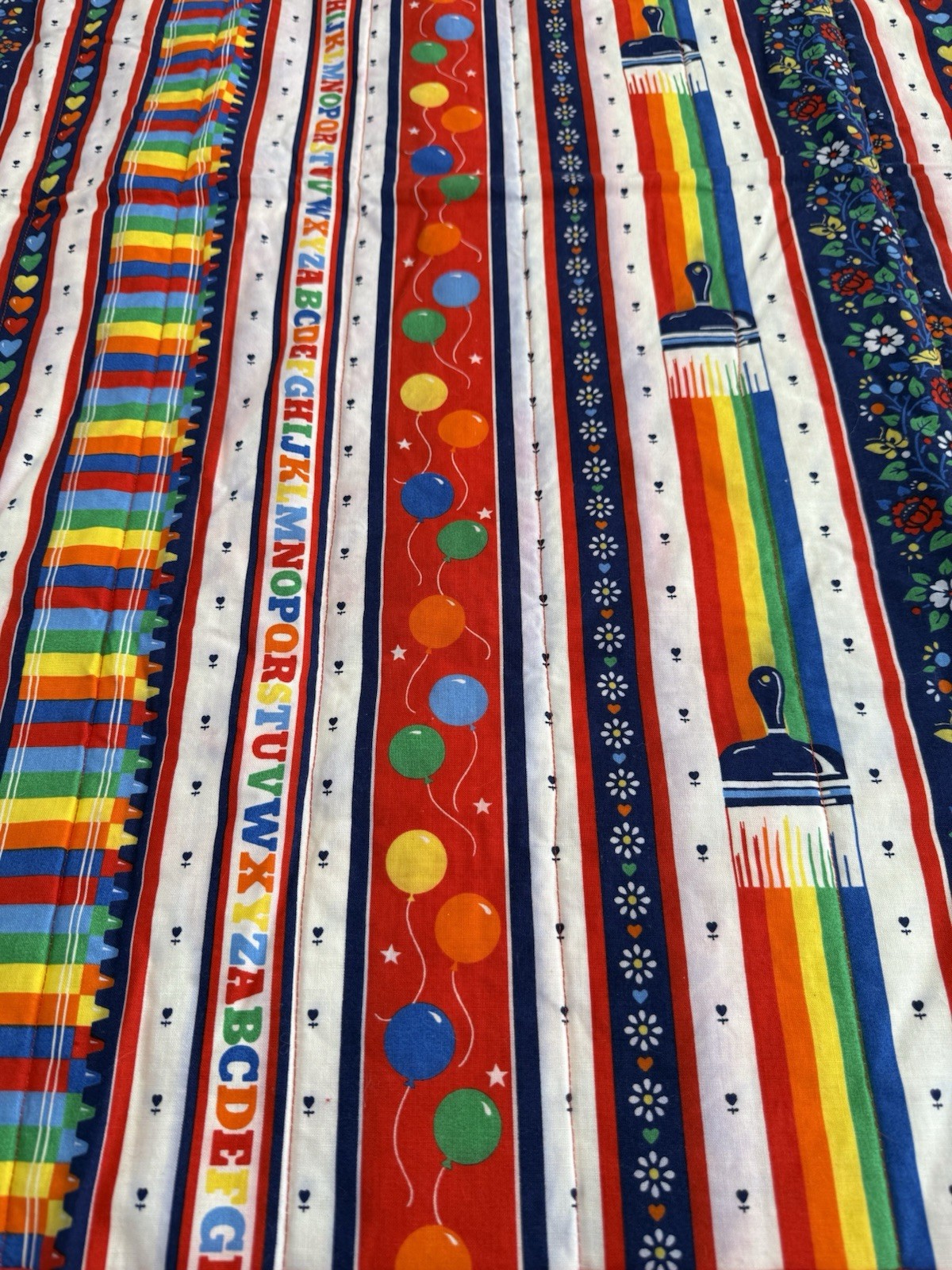 Handmade Nursery Quilt Baby Blanket Childs Throw Crayons ABC Stripes 47X42
