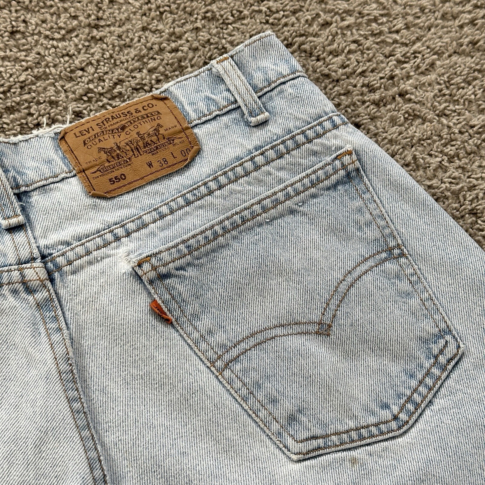 Vintage 90s Levis 550 Orange Tab Denim Shorts Men s 38 Light Wash Made In USA