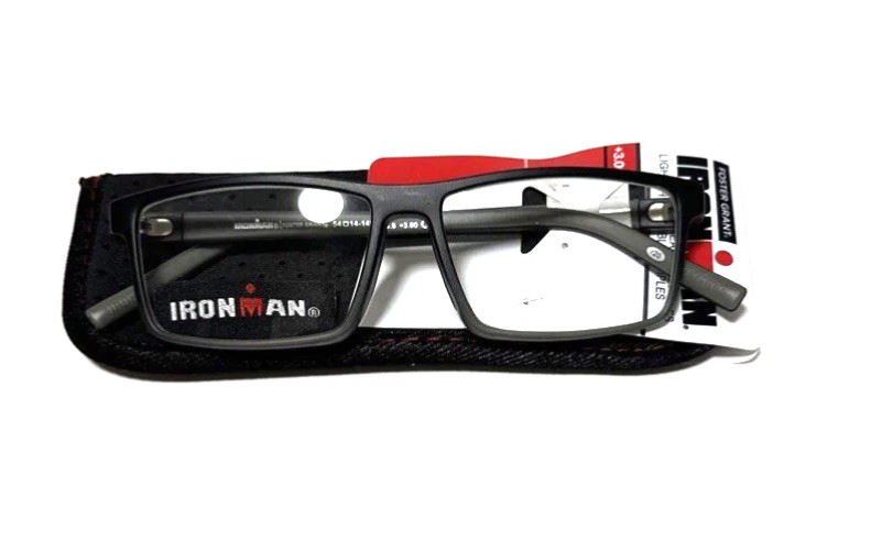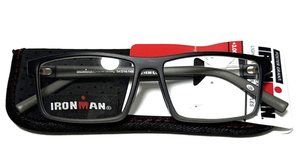 NEW FOSTER GRANT Ironman men s READING GLASSES 3.00 Strength w case Lightweight