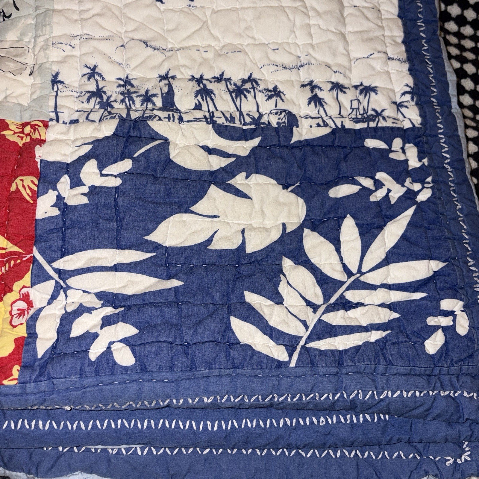 как выглядит Pottery Barn Kids Island Aloha Surf Quilted Pillow Sham Standard Beach 27" x 18" фото