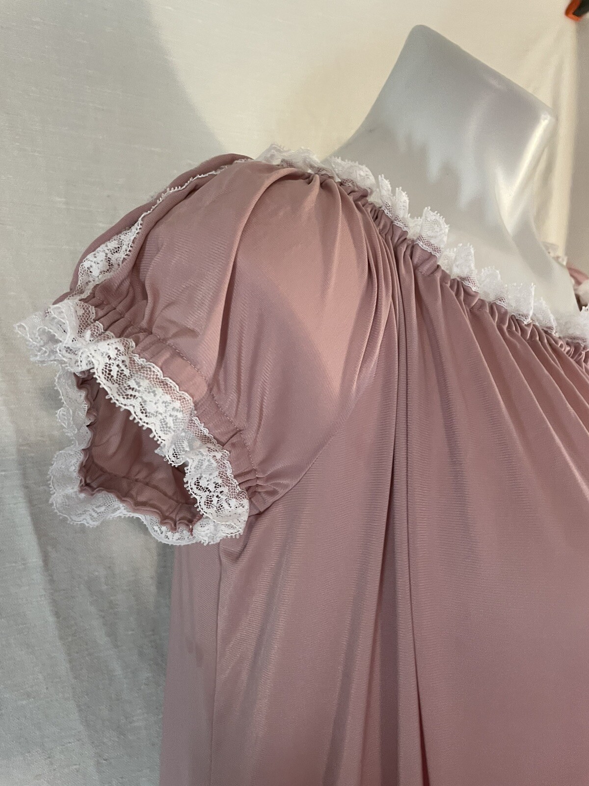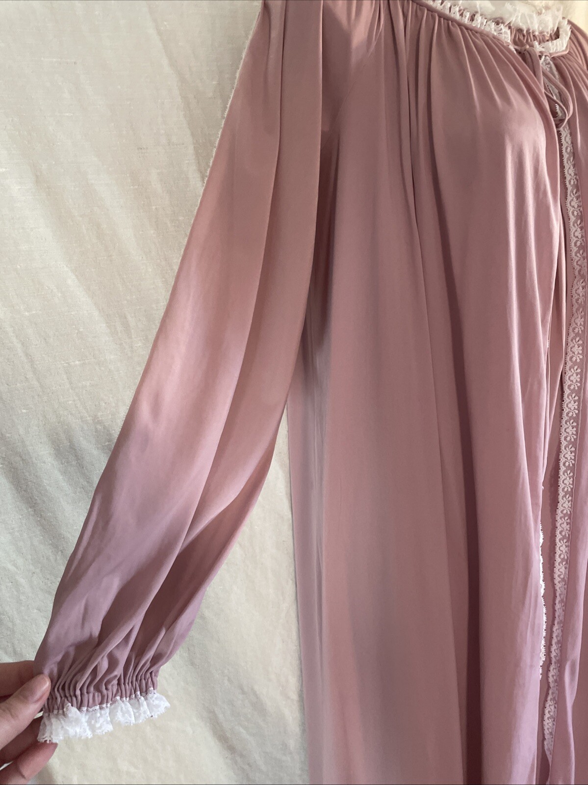 VTG Vassarette Peignoir Set 2 piece Robe Nightgown USA Sz S Rose Pink Long