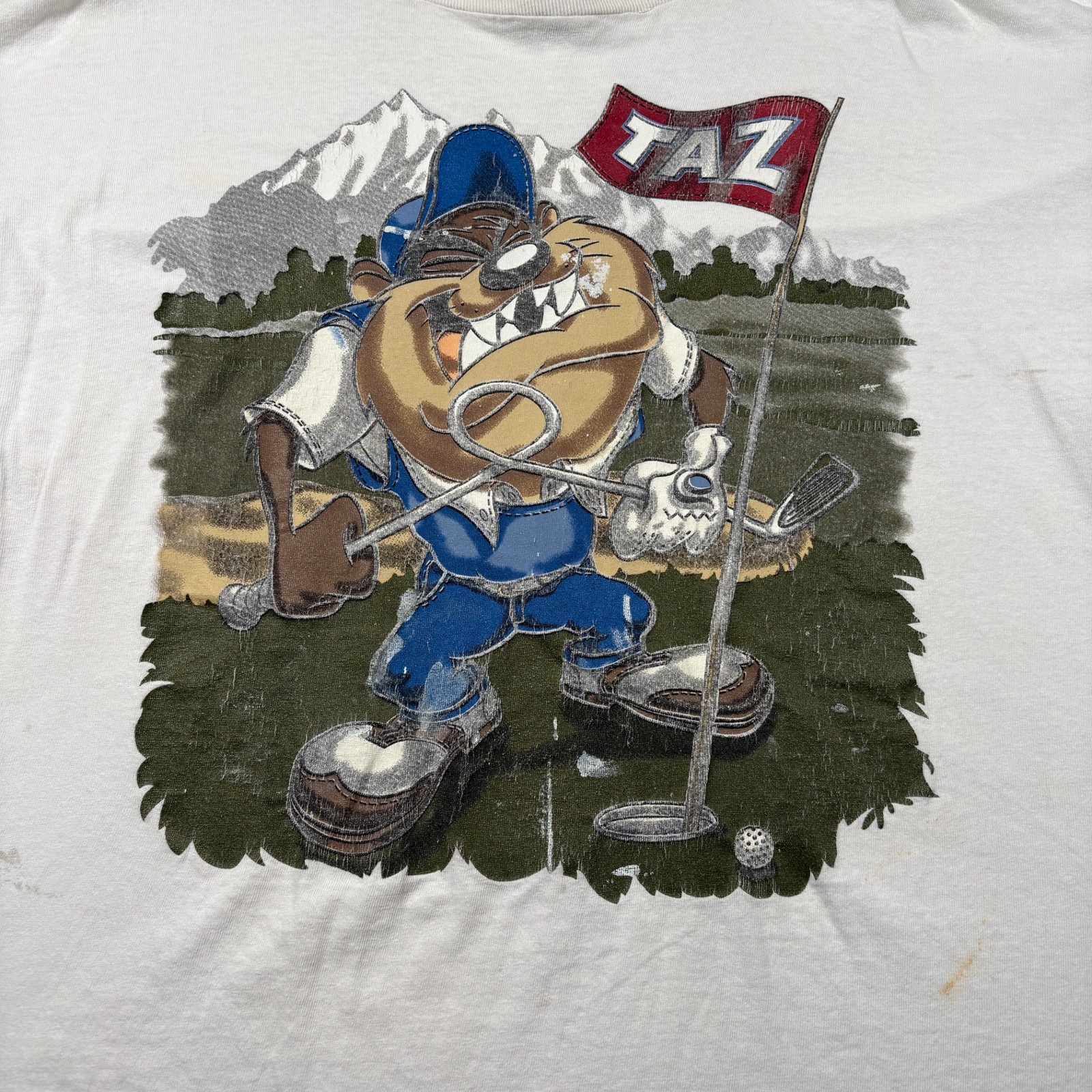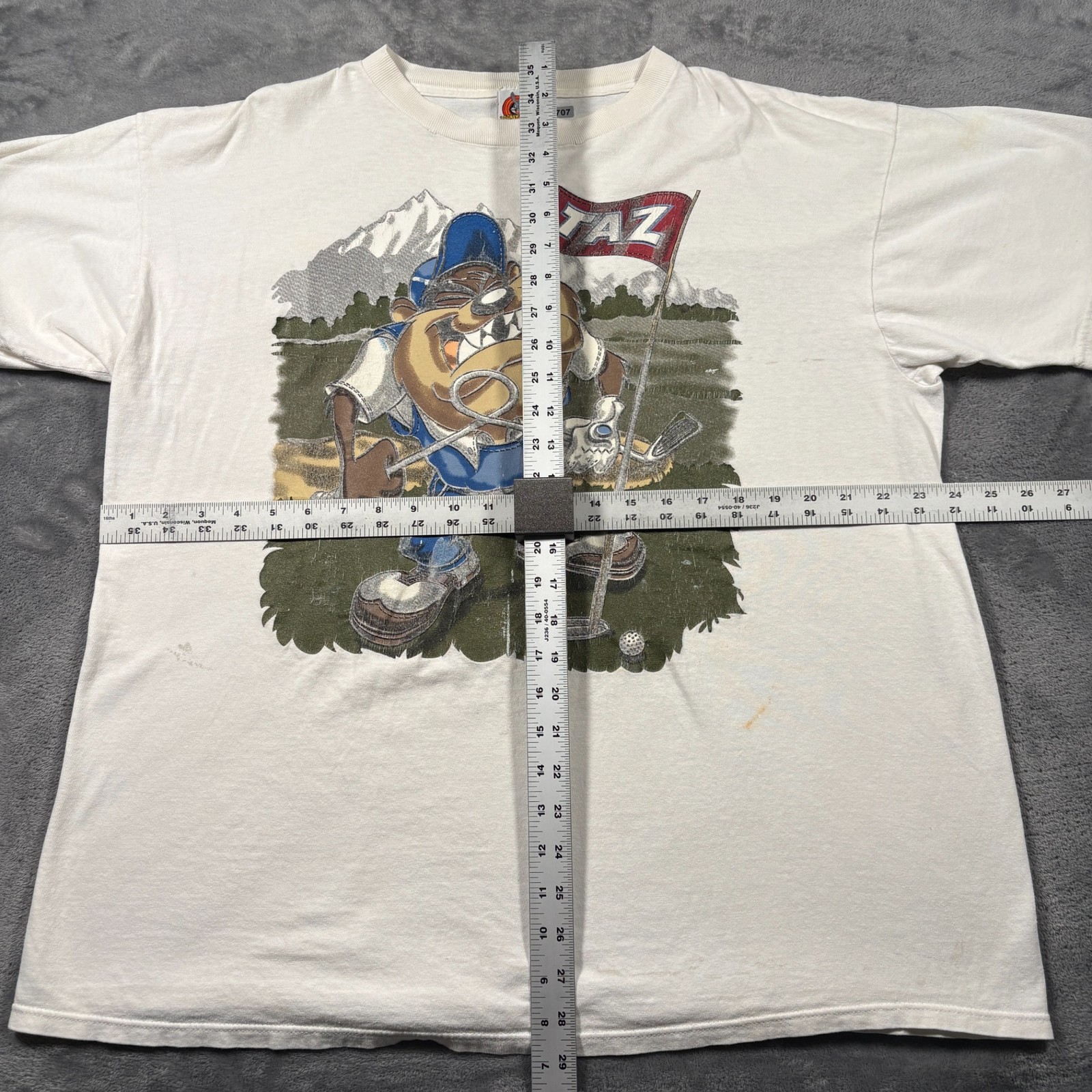 Vintage 1998 Looney Tunes T-Shirt Mens XL White Tasmanian Devil Taz Golf Cotton