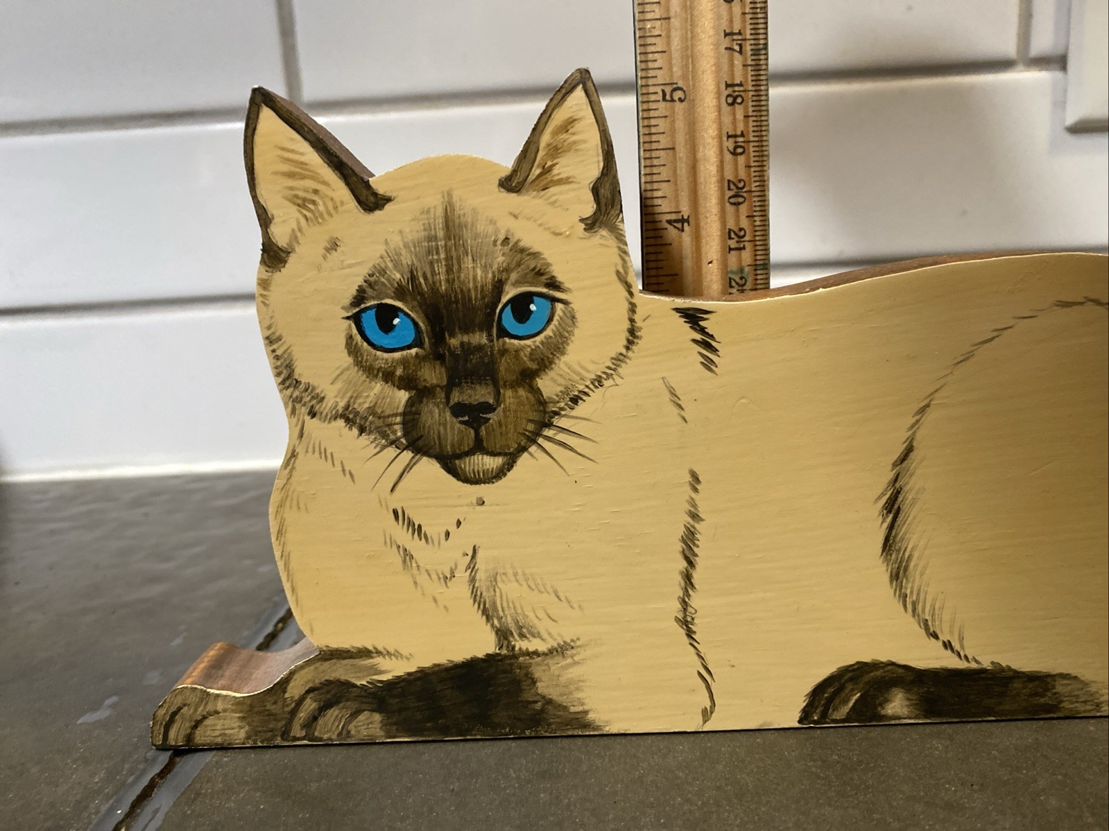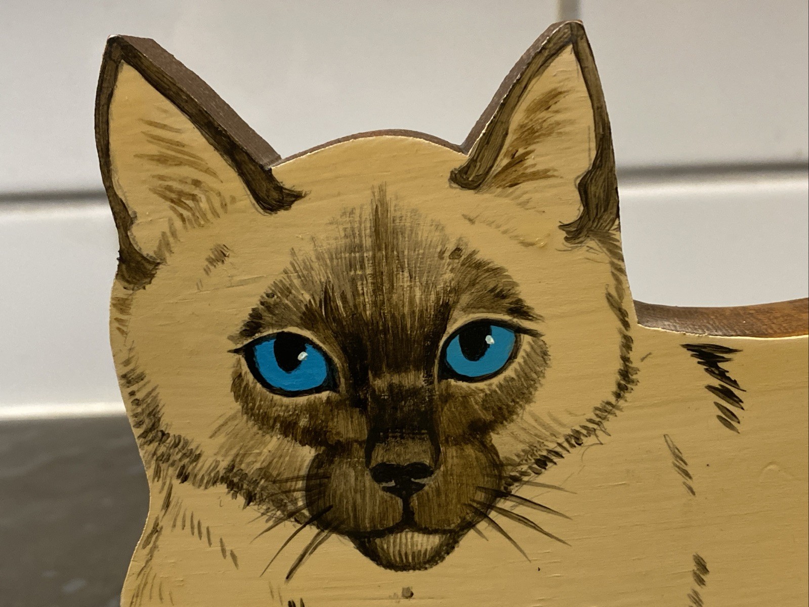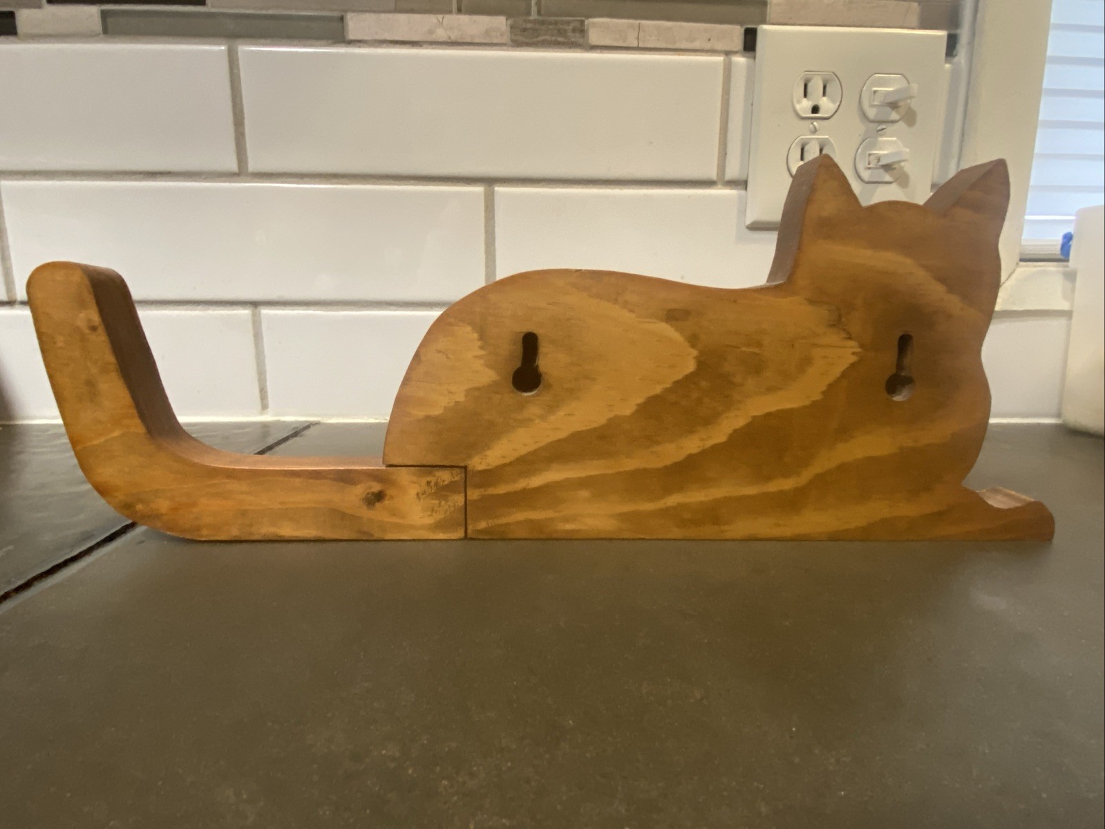 • Wooden Cat Wall Hanging with Hinged Tail