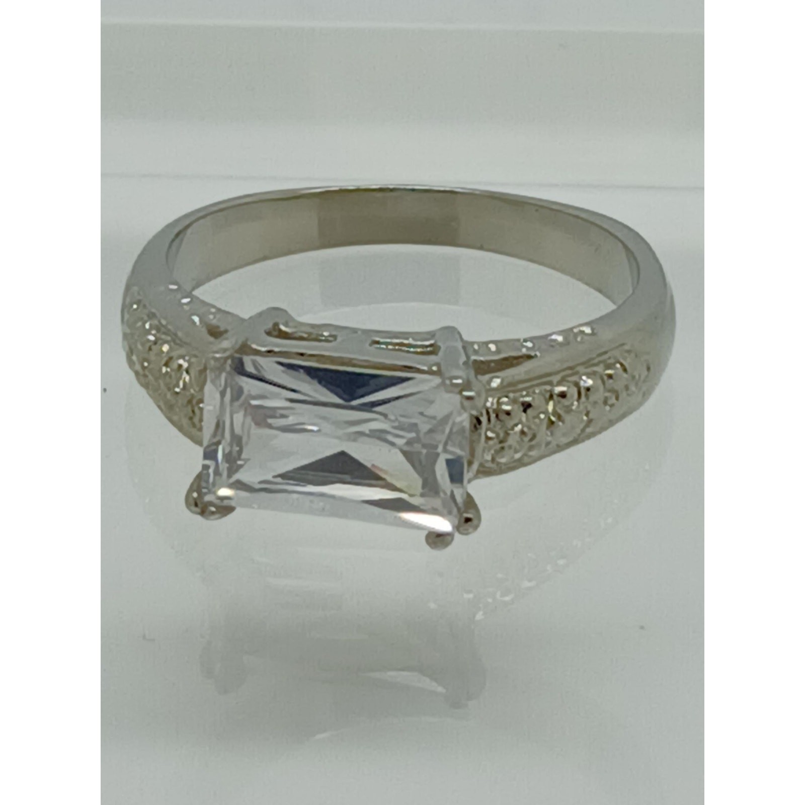 Vintage White Gold Plated CZ Engagement Ring 3.0 Carat Radiant Cut Stone Size 9