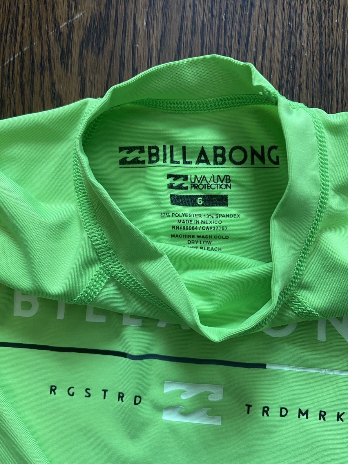 как выглядит Billabong Kids Rash Guard Size 6 Green Long Sleeve UV Protection Swim Shirt фото