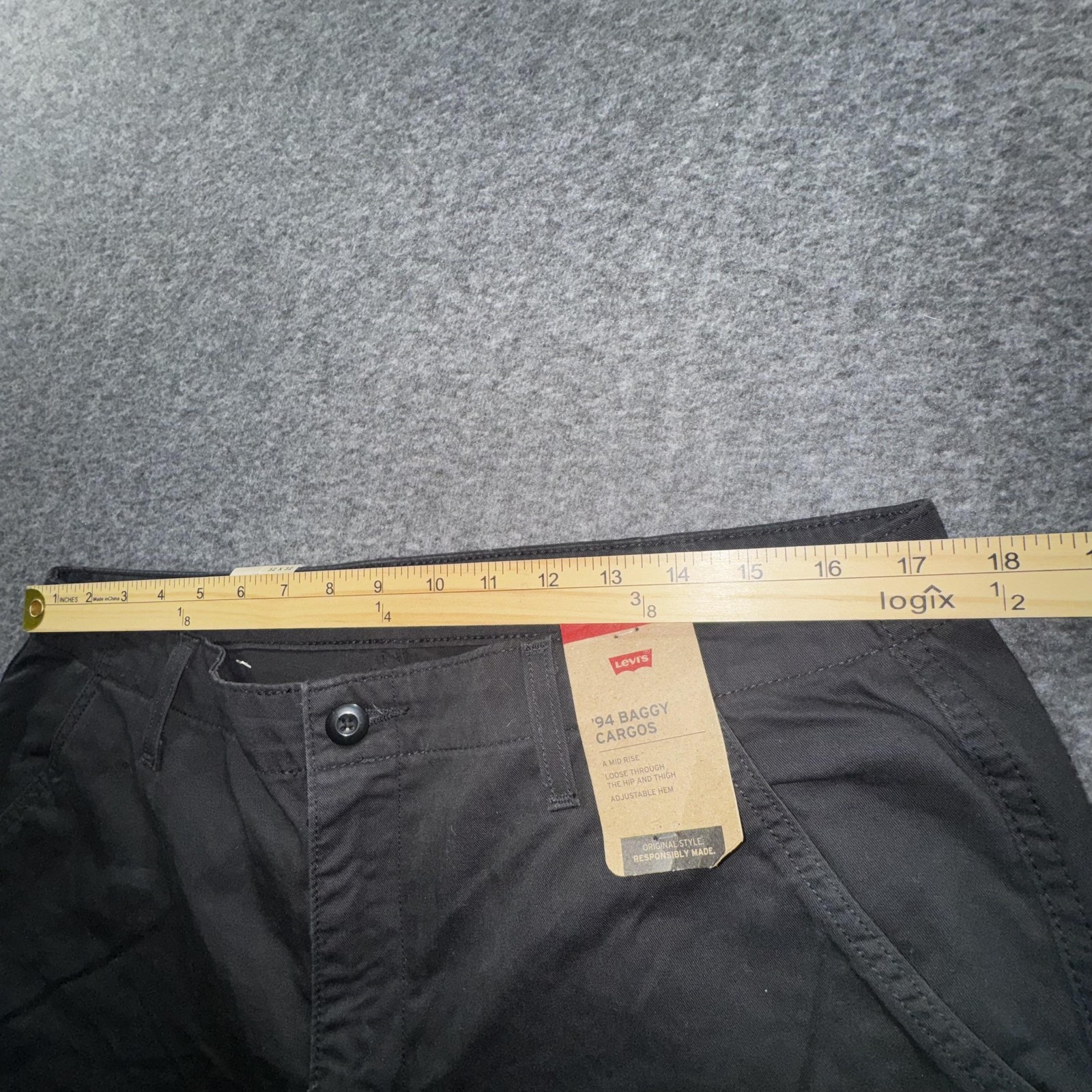 как выглядит Levis 94 Baggy Cargos Pants Mens 32x32 Black Relaxed Fit Drawstring Hem фото