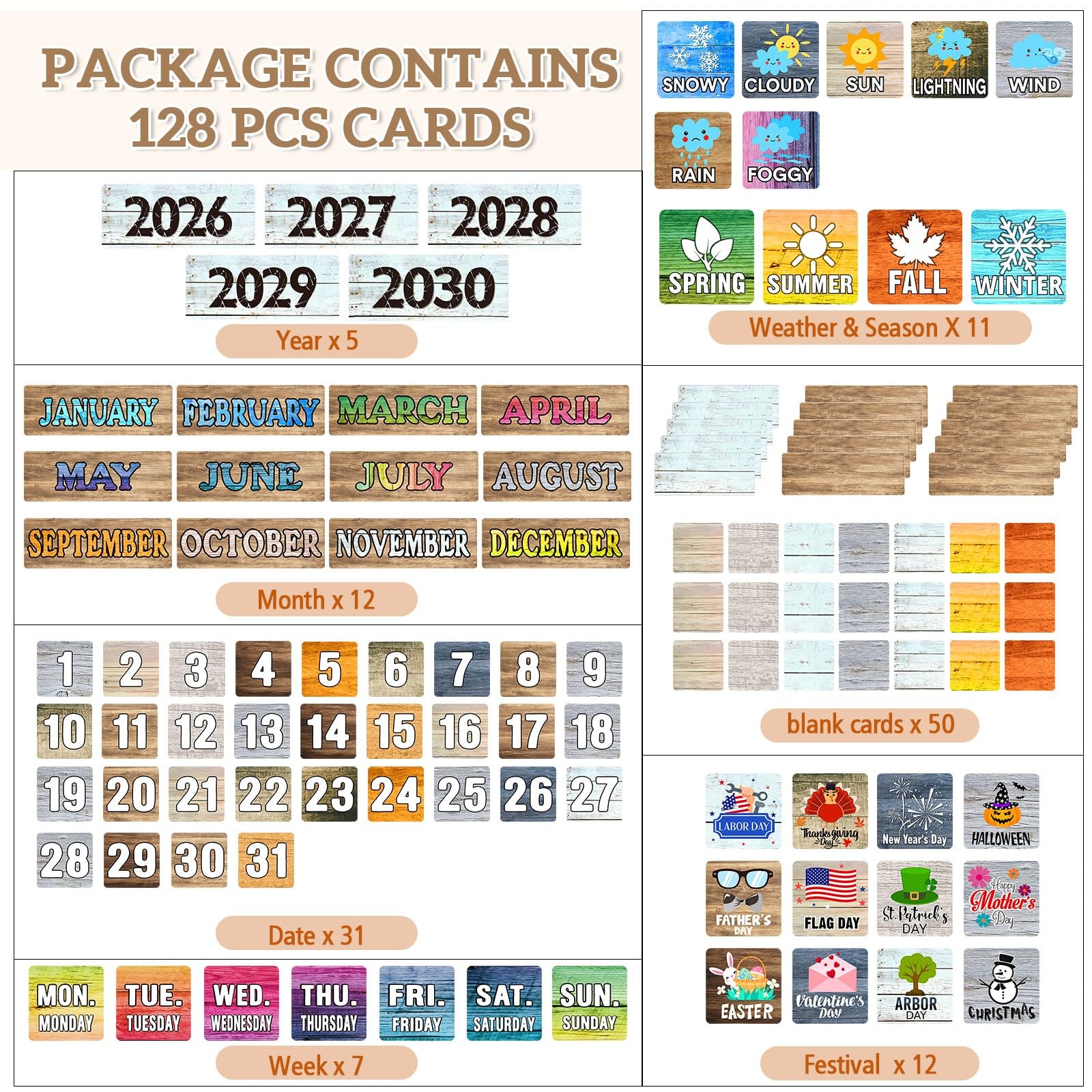 2 Pcs Classroom Monthly Calendar Pocket Chart 118 Cards 31 Daily Schedule Rustic