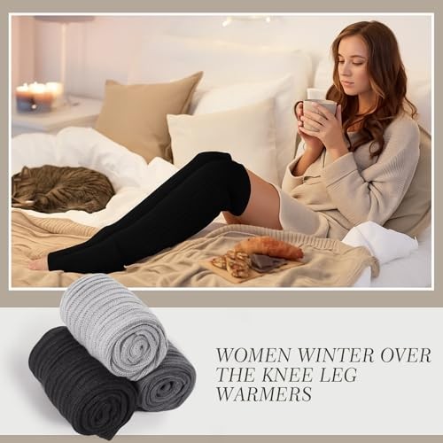 Geyoga 1/Pair Fleece Leg Warmers 24inch Long over 3 Black,light Gray,dark Gray