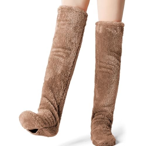 Over Knee Fuzzy Socks for Men Women, Warm Cozy Leg Warmers for One Size Brown