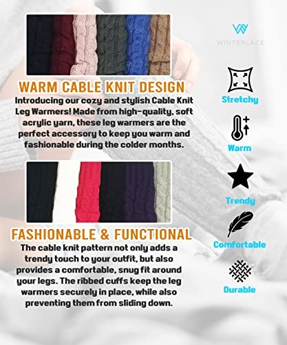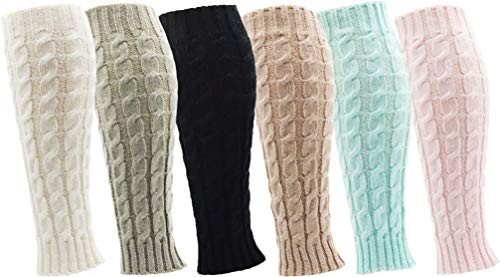Leg Warmers for Women, 6 Pairs Knee High Cable Knit Warm Thermal Assorted E