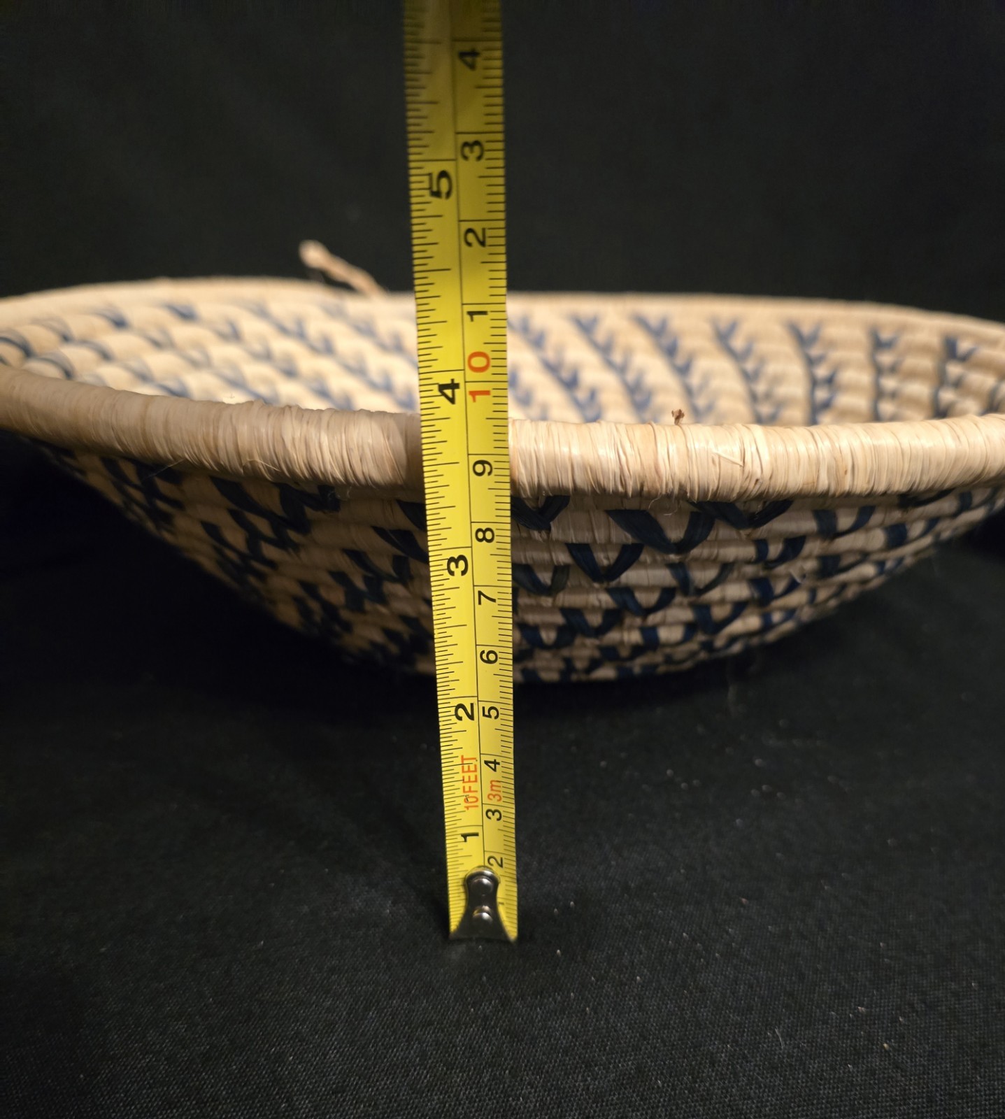 как выглядит Handwoven Ugandan African Basket With Swirl Design, Blue And Cream фото