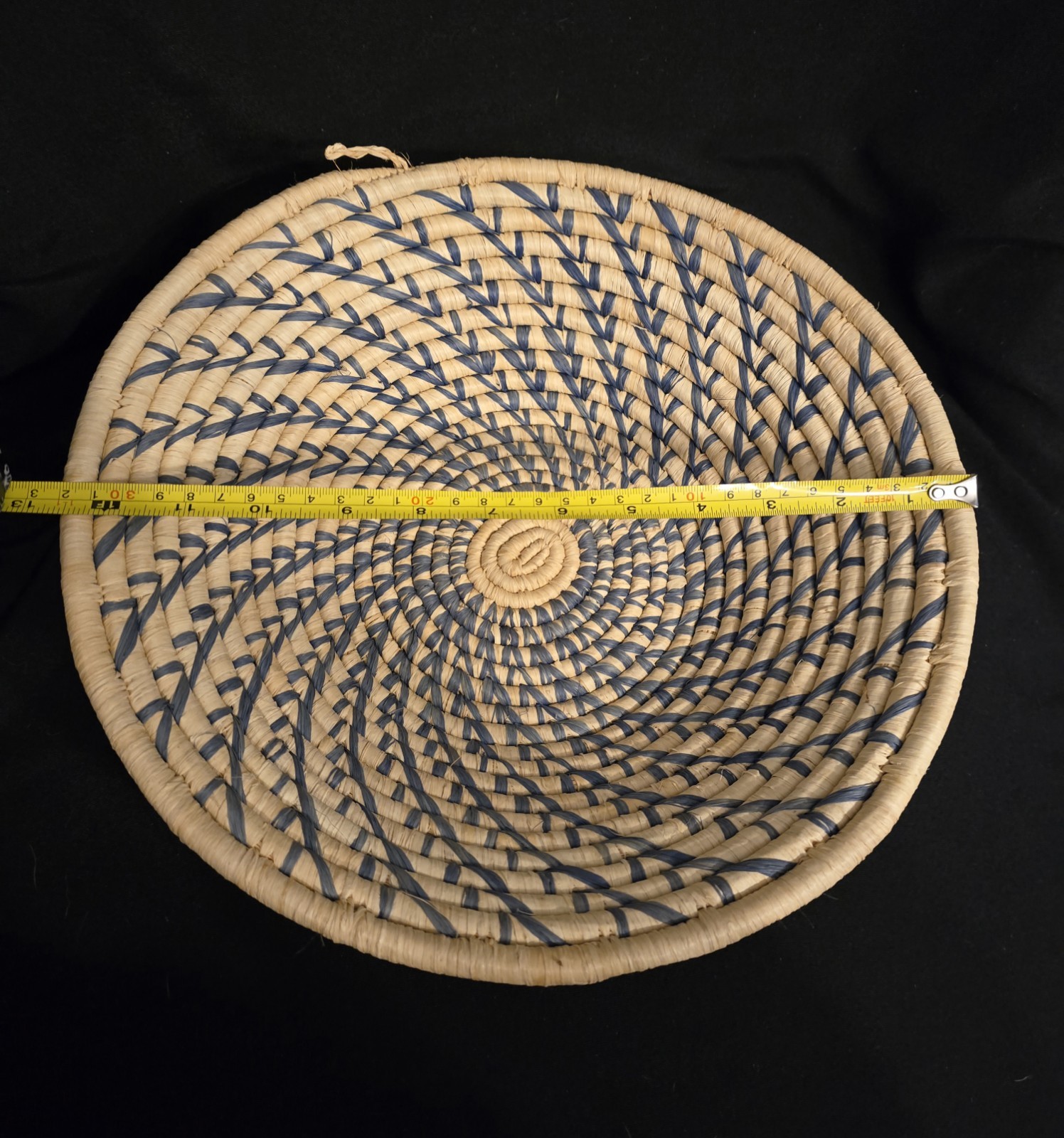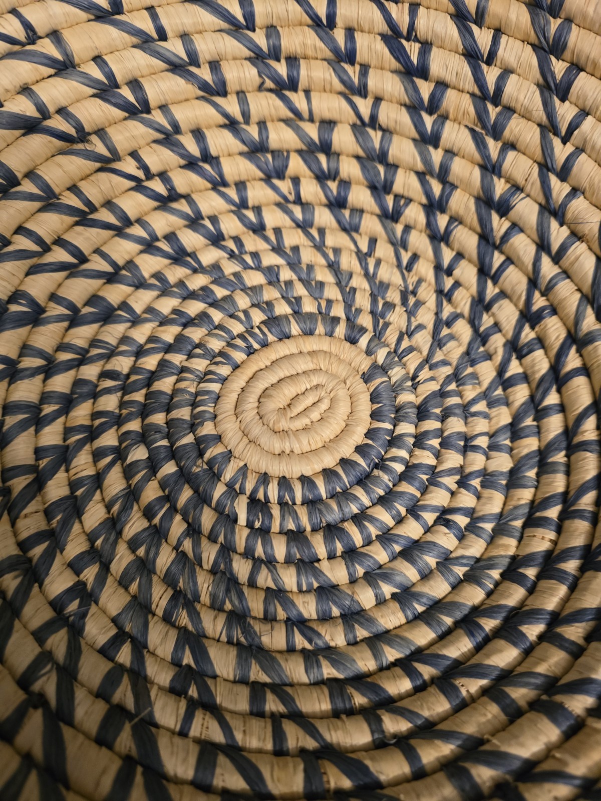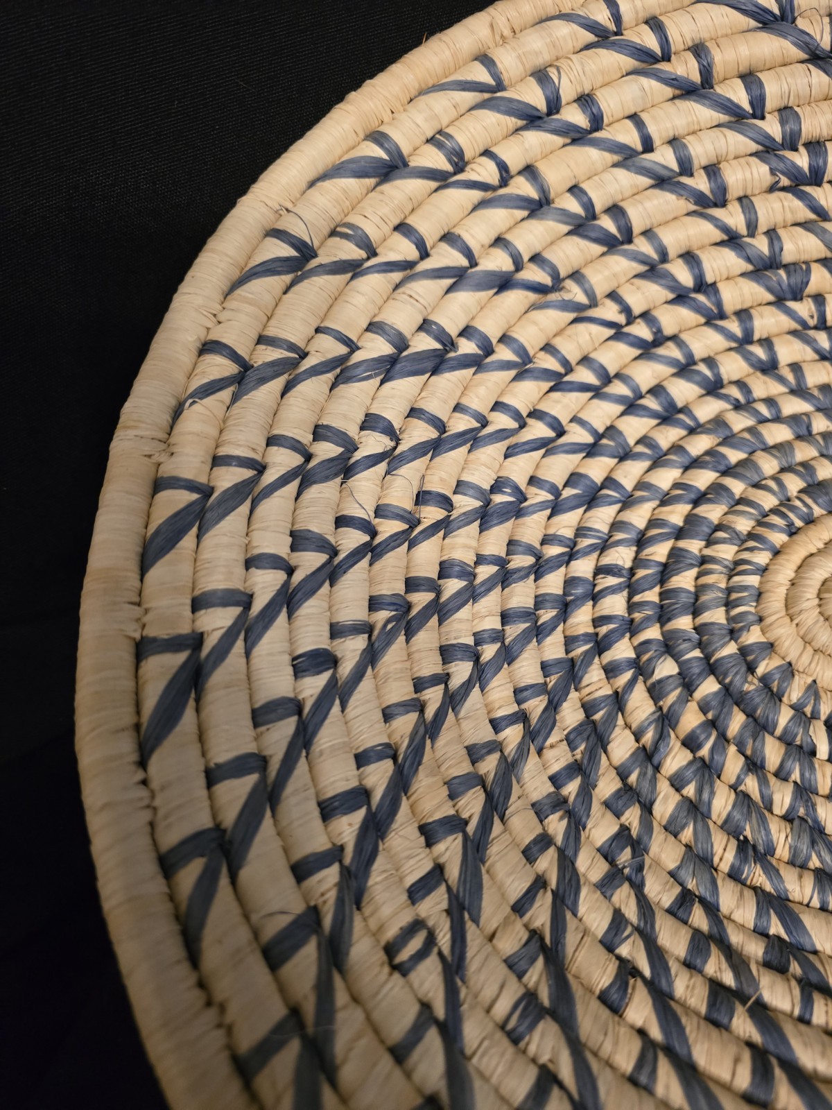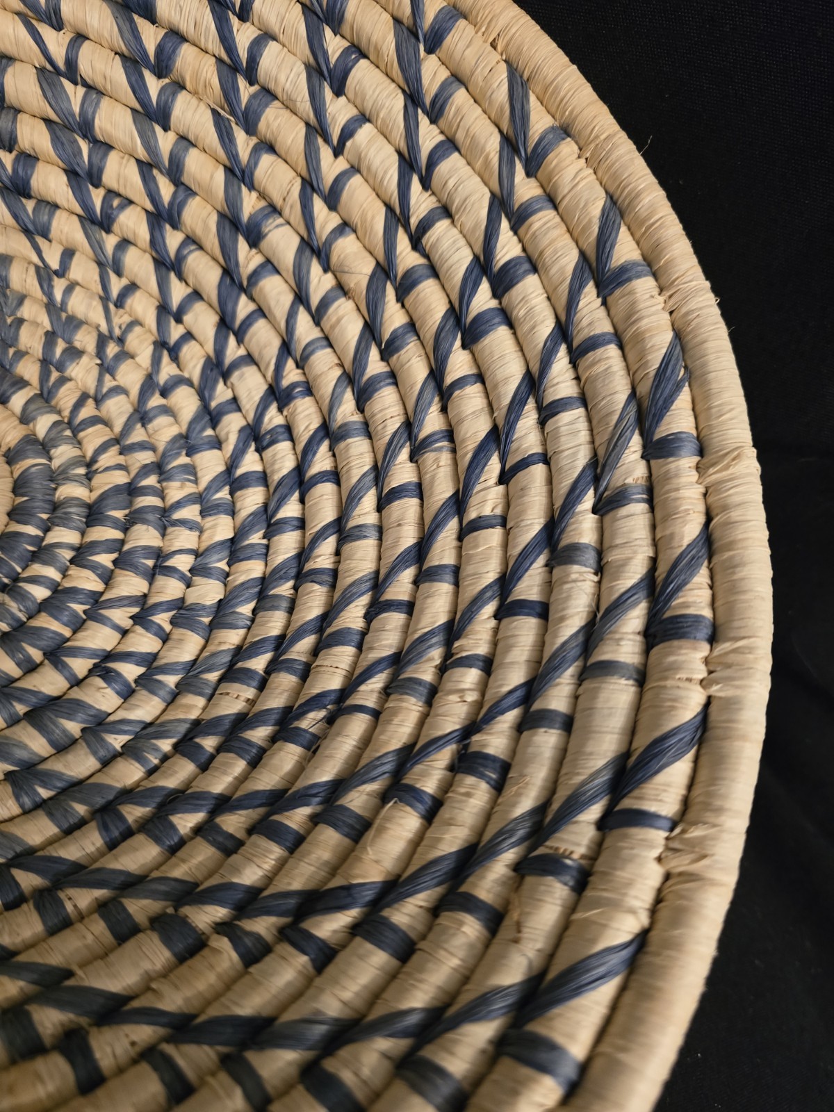 Handwoven Ugandan African Basket With Swirl Design, Blue And Cream