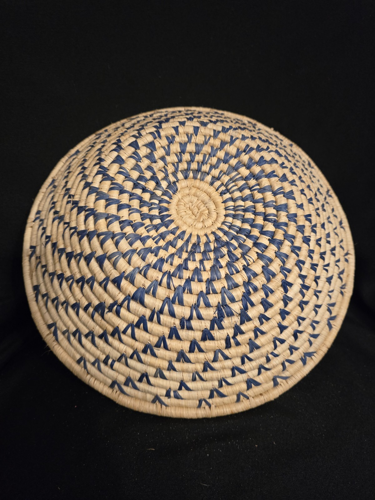 • Handwoven Ugandan African Basket With Swirl Design, Blue And Cream