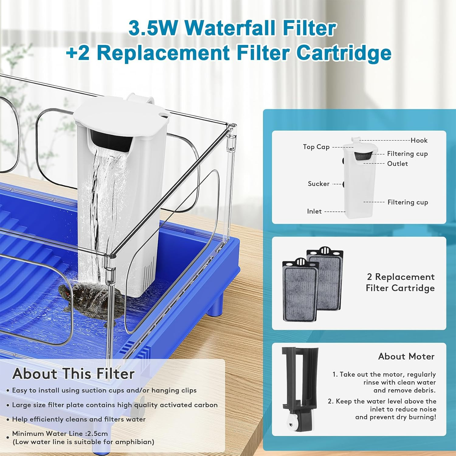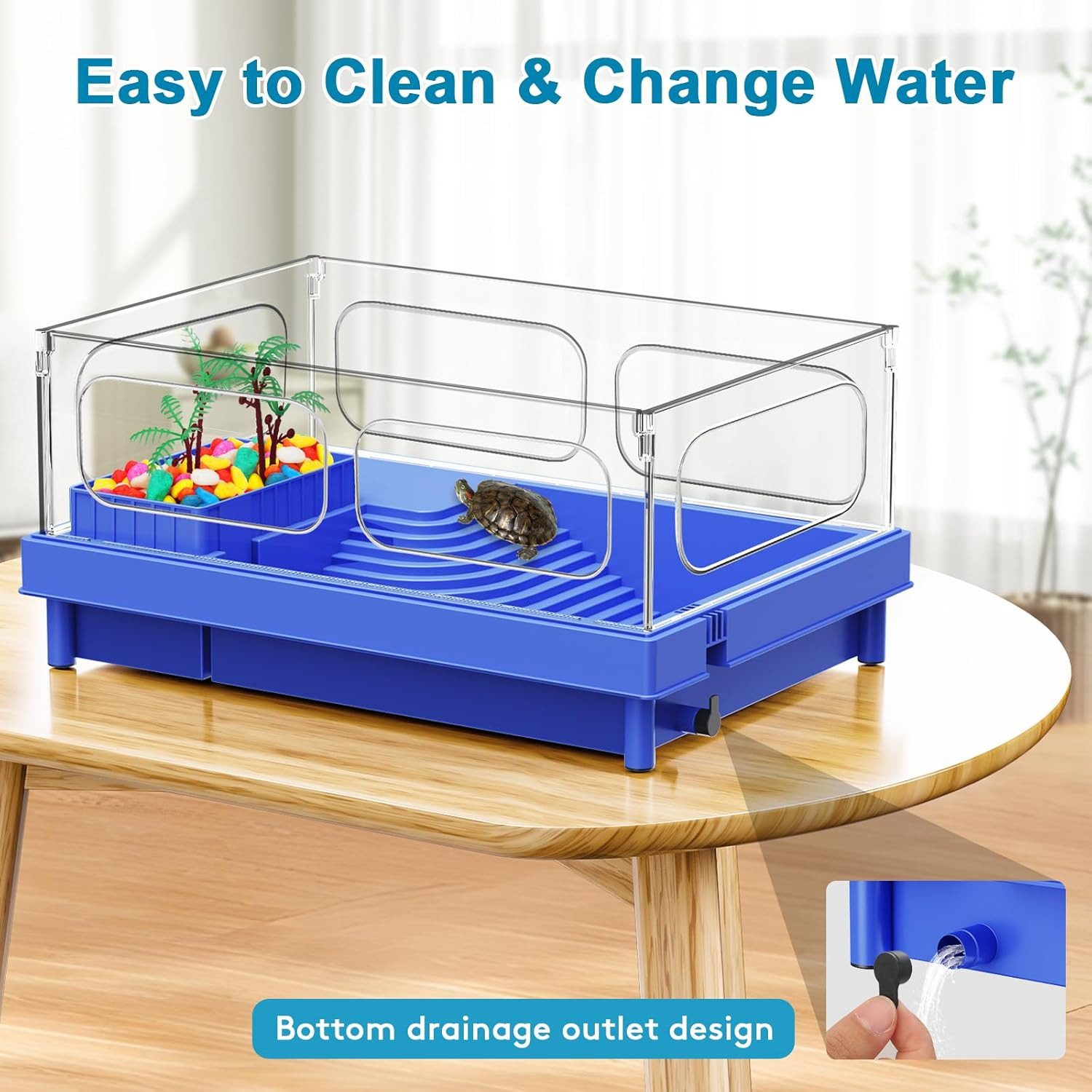 Turtle Tank Kit, Blue Small Turtle Tank Starter Kit, Turtle Aquarium with Light,