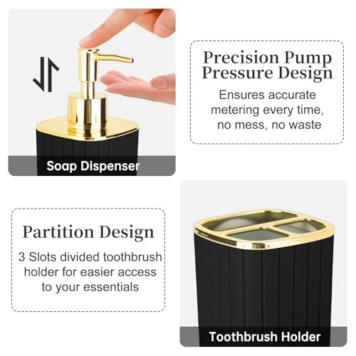 2PCS Bathroom Accessories Set and Gold Bathroom Accessories Include Soap Black