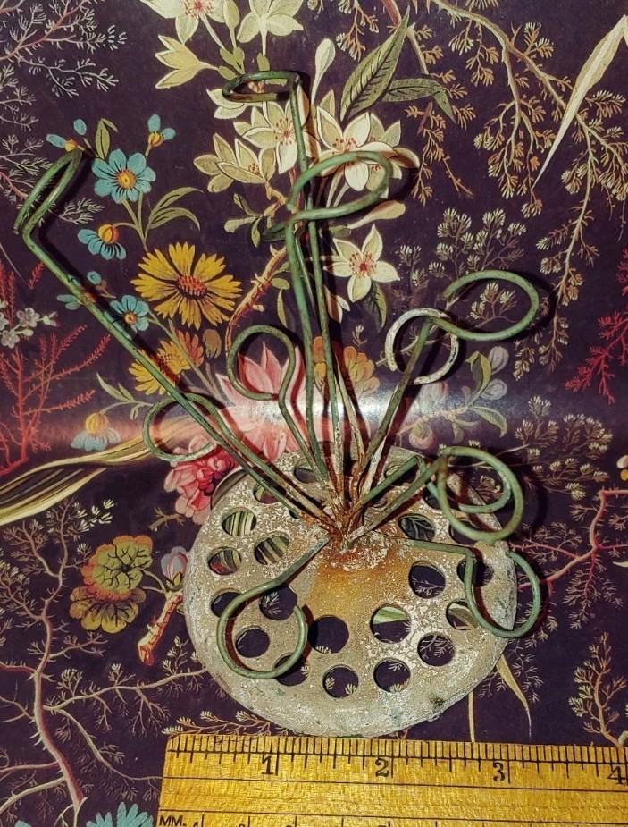 как выглядит Antique Flower Frog 1930s Weighted Cast Metal J.P.O. Pat. 12 Wire Loops 24 Holes фото