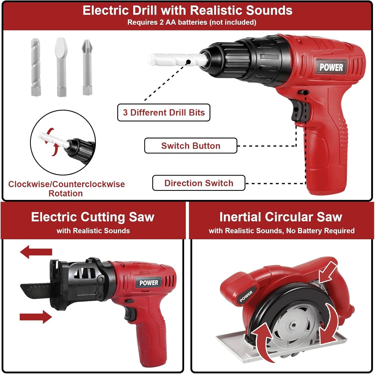 Imaginative Play Kids Tool Set - 36 PCS with Electric Drill Chainsaw