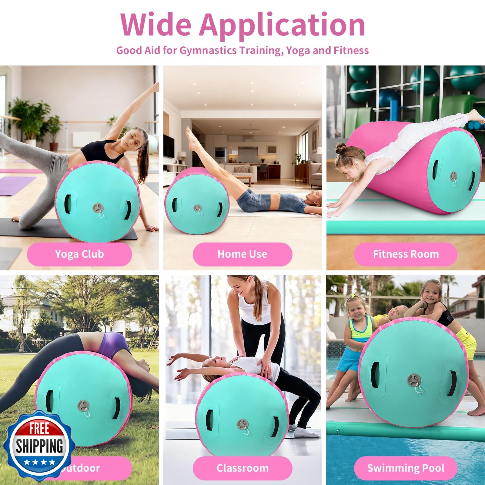 как выглядит GYUEM Air Roller Gymnastics Barrel Inflatable Tumbling Roller Air Mat Octagon... фото