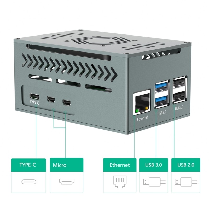 как выглядит Aluminum Shell Case for RPi 5 Active Cooling with Cooling Fan Heatsinks фото