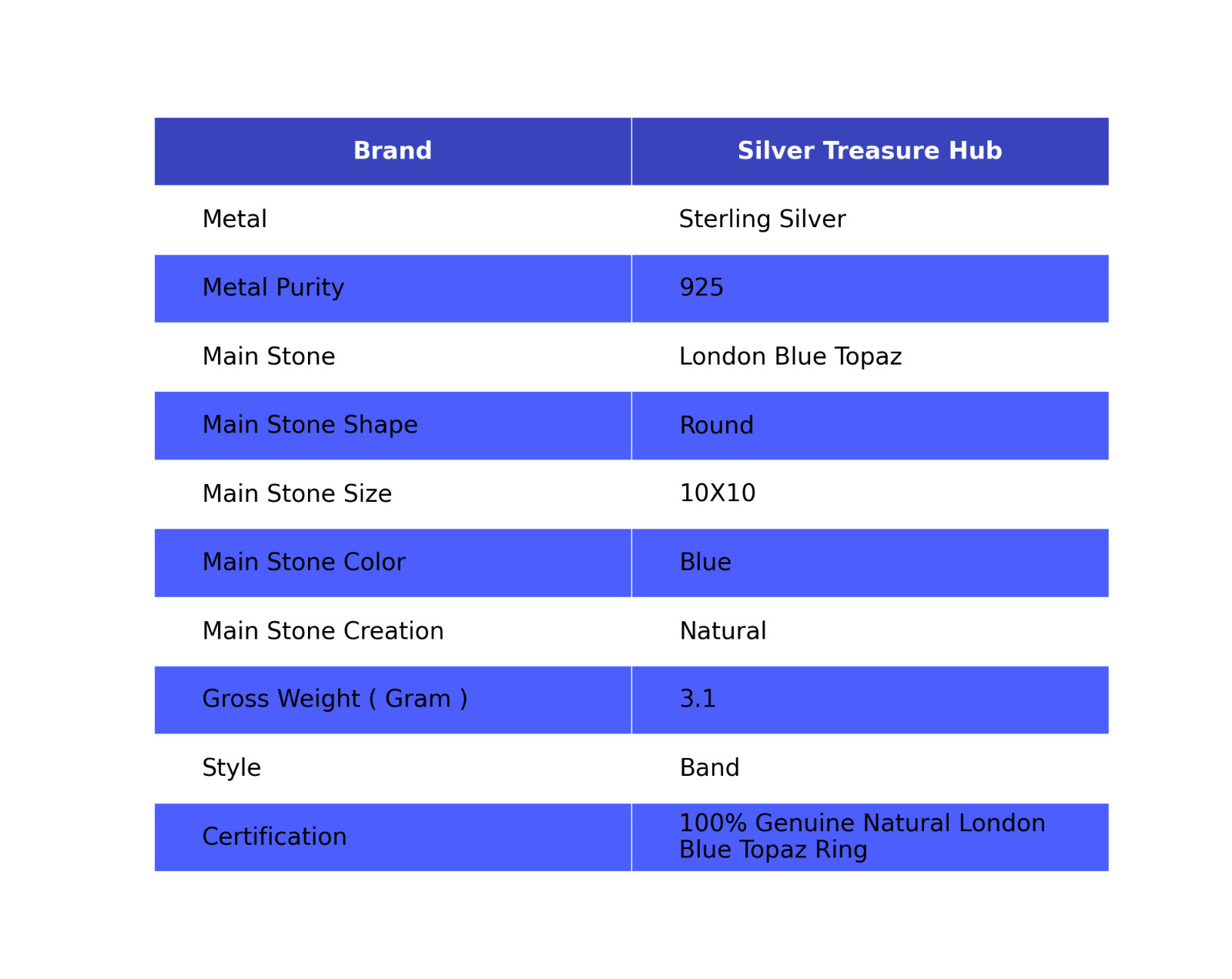 Certification: 100% Genuine Natural London Blue Topaz Ring