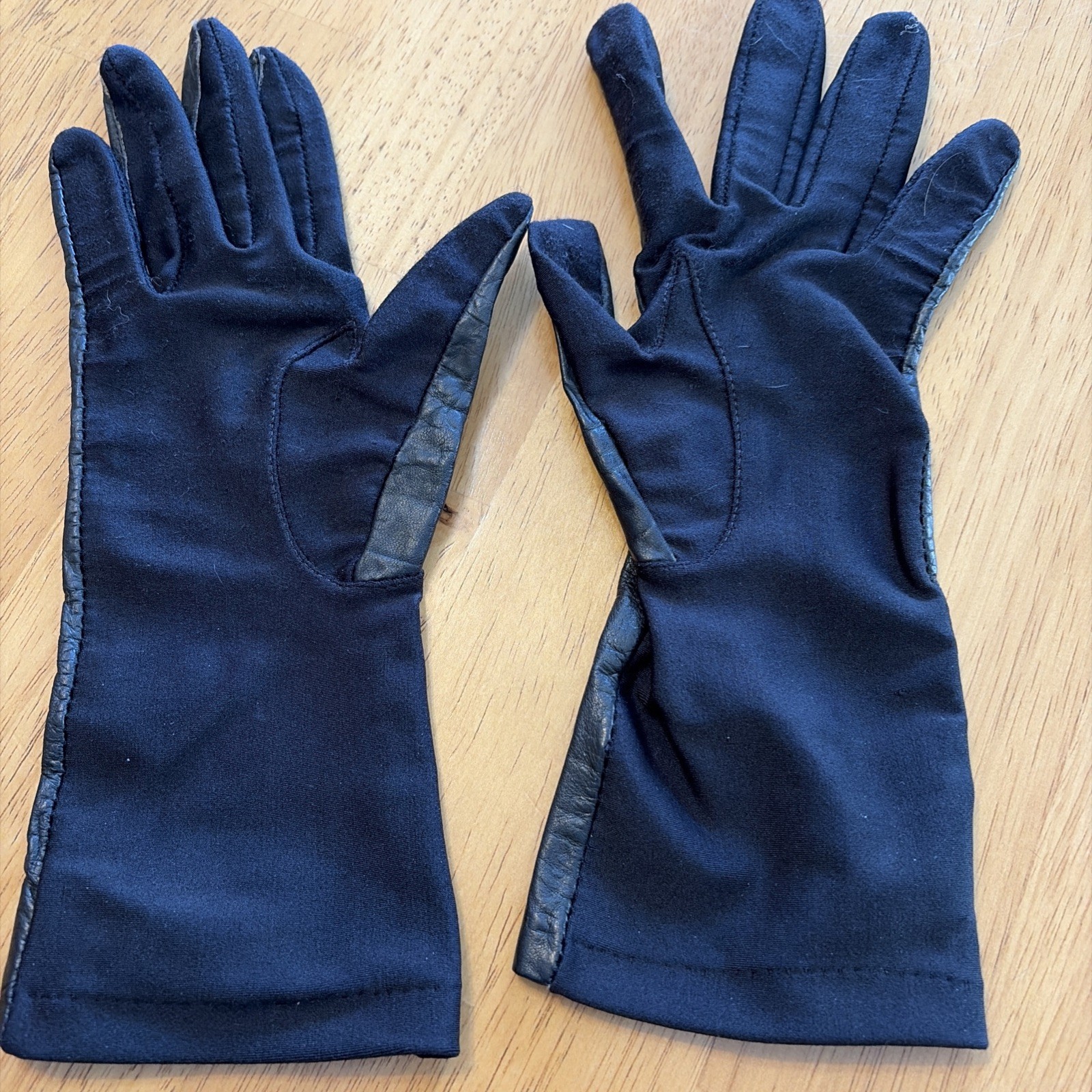 VTG Isotoner Aris Stretch Driving Gloves Leather Black Gold Accent One Size