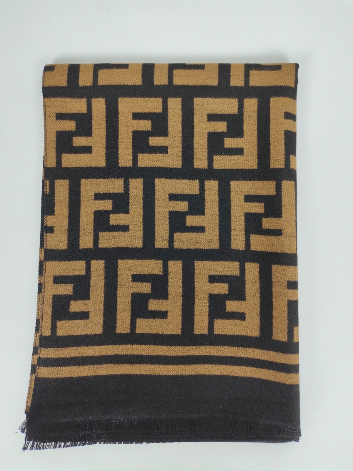 как выглядит FENDI genuine vintage Black / Brown Wool wrap shawl winter scarf scarves фото