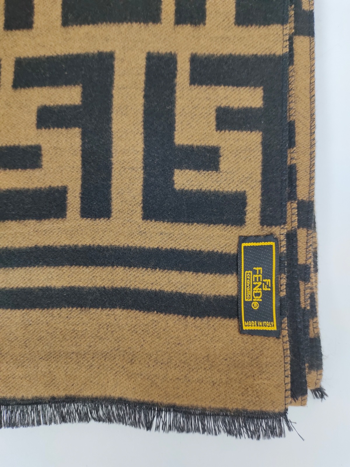 FENDI genuine vintage Black / Brown Wool wrap shawl winter scarf scarves