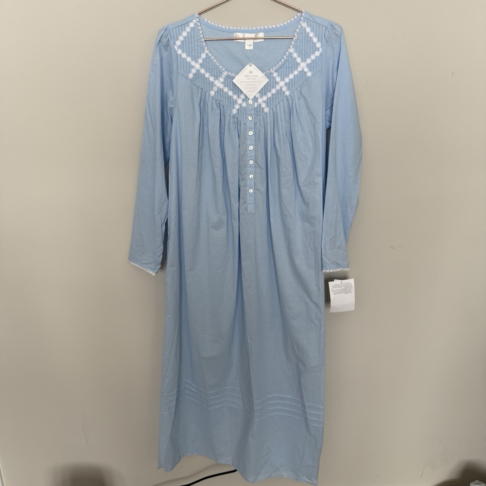 Eileen West Womens Long Ballet Nightgown Small Poetic Blue Cotton Grannycore NEW