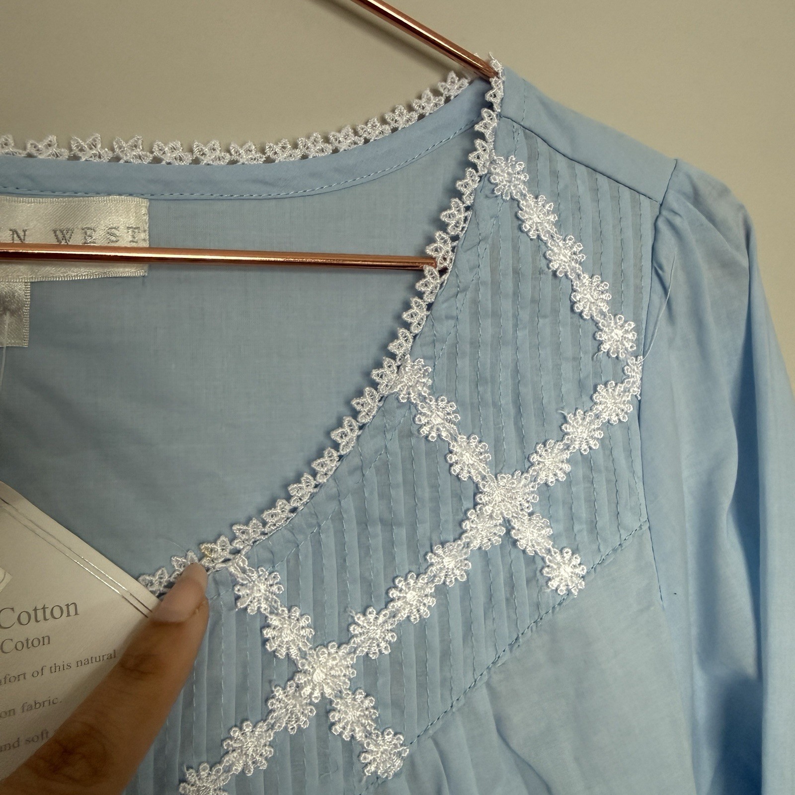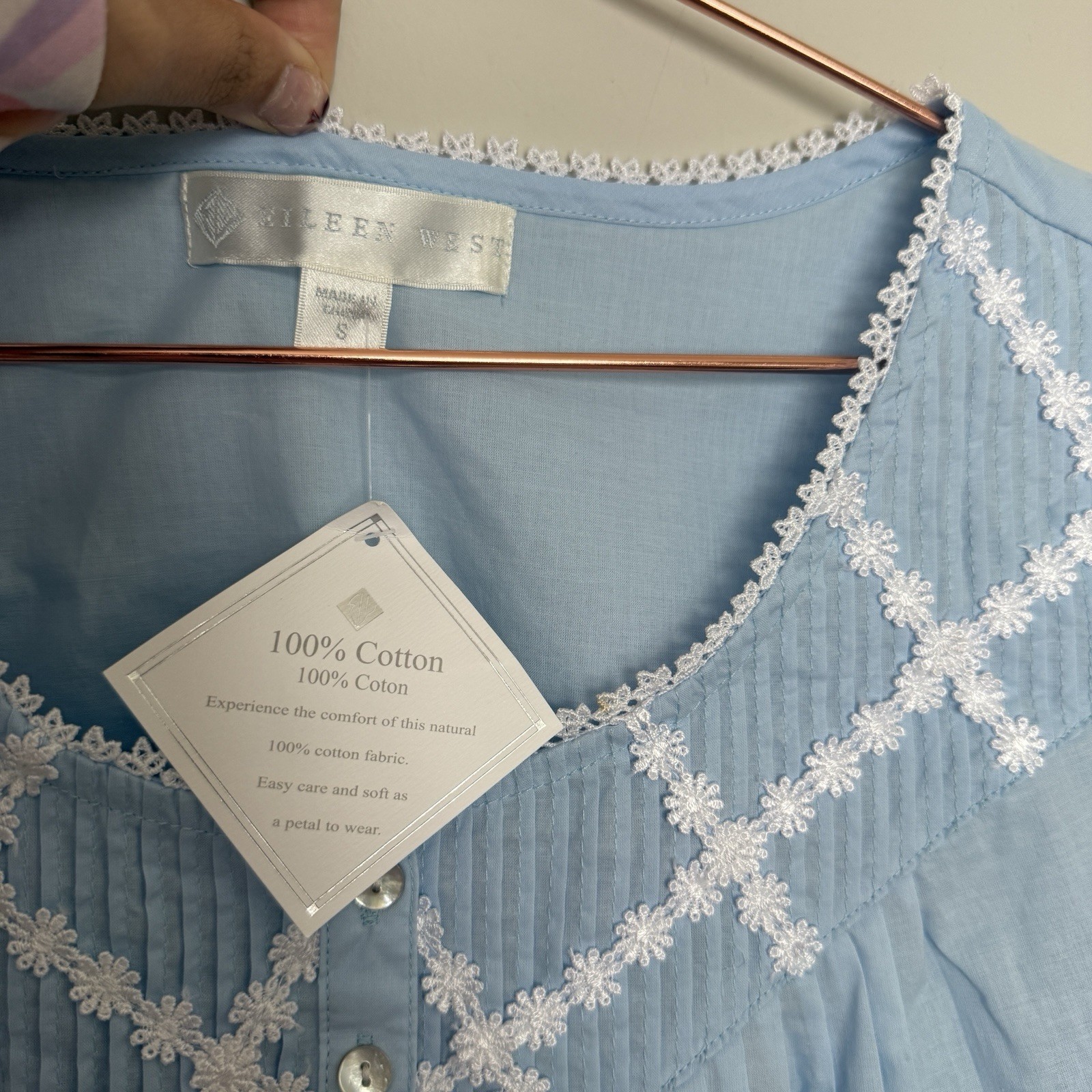как выглядит Eileen West Womens Long Ballet Nightgown Small Poetic Blue Cotton Grannycore NEW фото