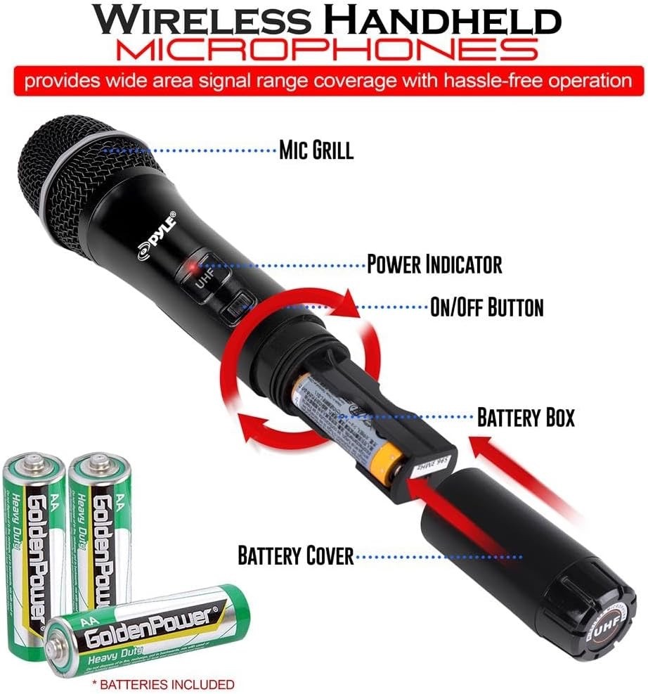 Pyle 8 Ch UHF Wireless Microphone System Rack Mountable Base 4 Handheld MICS 4