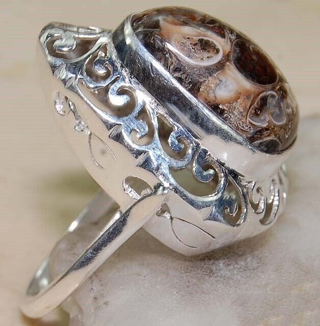 как выглядит Natural Turritella Agate 925 Sterling Silver Ring Jewelry Sz 7 B16-9 фото