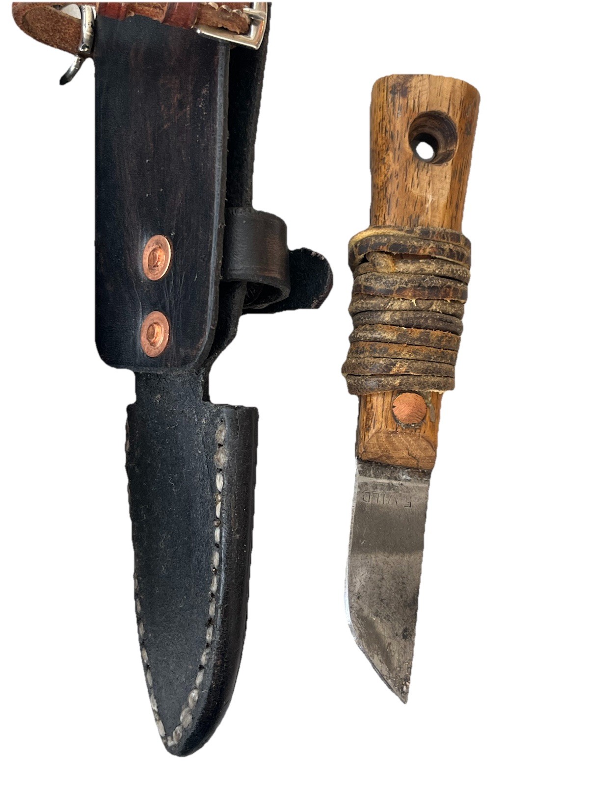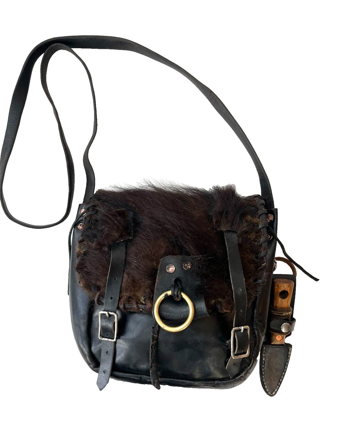 Black Leather Heavy Duty Mountain Man Possibles Bag, Fur, Custom Patch Knife