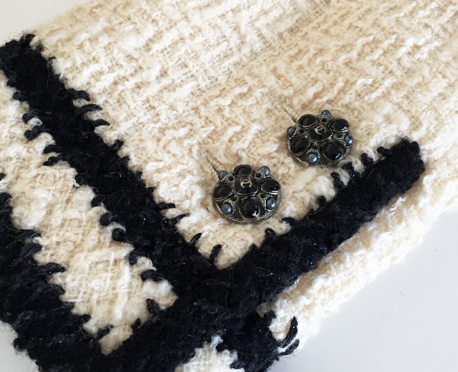 как выглядит 5,450 CHANEL Iconic Ivory Black Contrast Boucle JACKET FR 40 / US 6 EUC фото