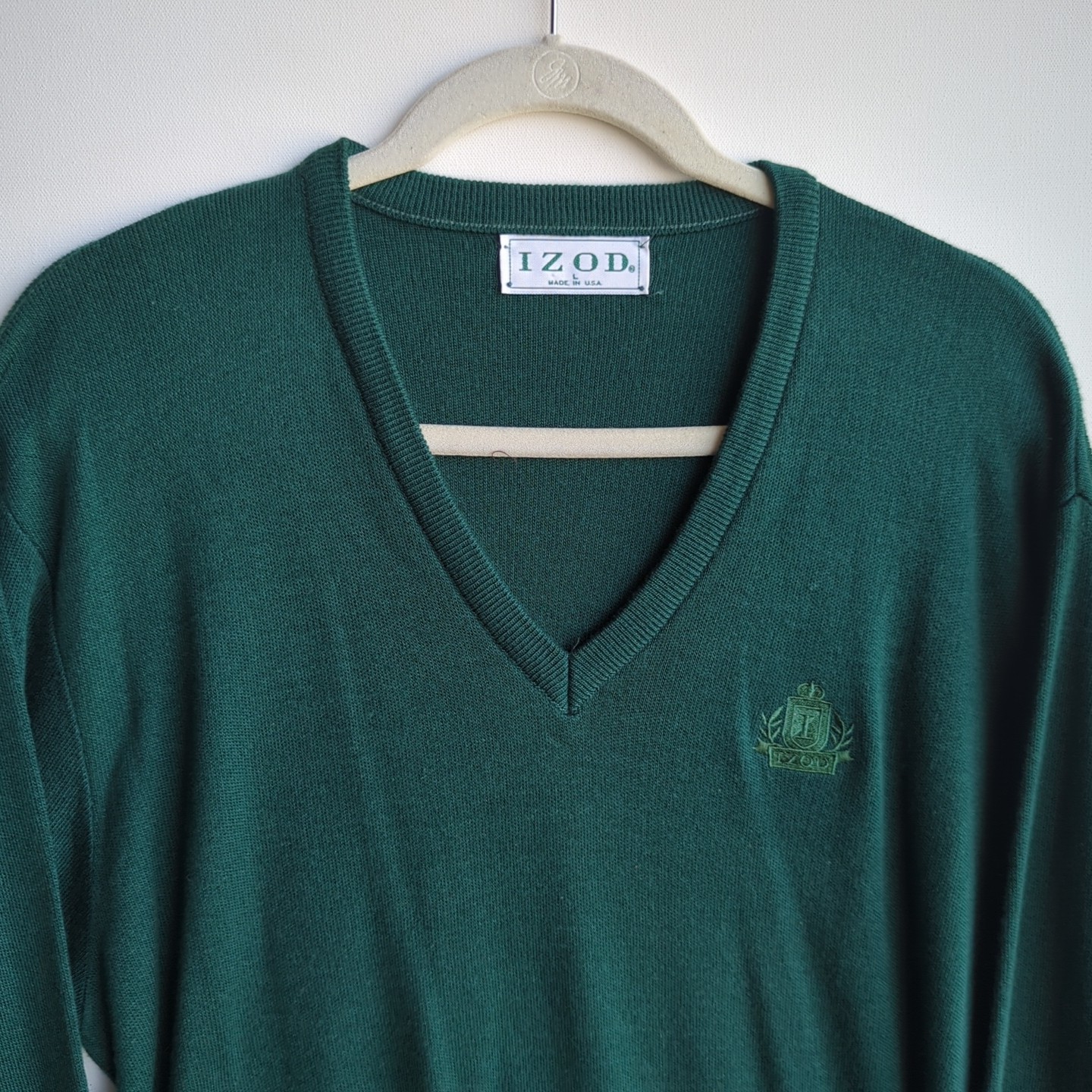 как выглядит IZOD Vtg 80s Green V Neck Pullover SWEATER Men